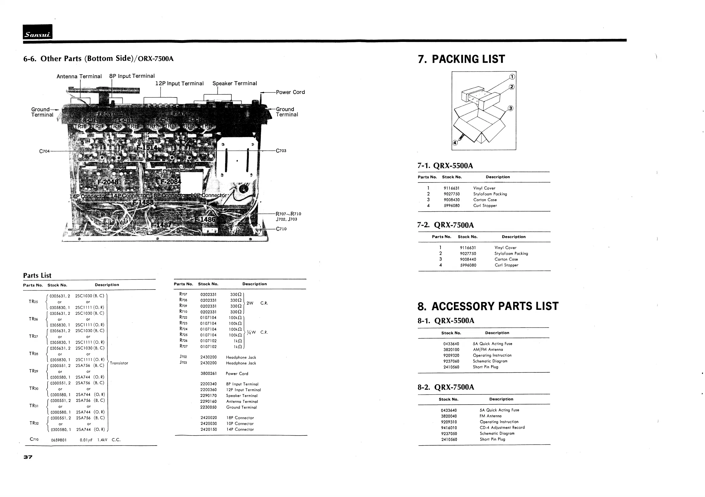 Sansui QRX-5500A - 7. PACKING LIST; 7-1. QRX-5500 A; 7-2. QRX-7500 A; 8. ACCESSORY PARTS LIST