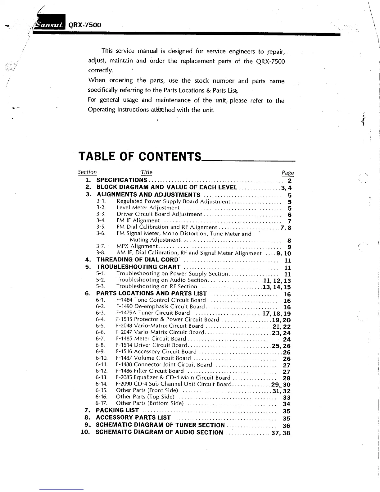 Sansui QRX-7500 - Table of Contents