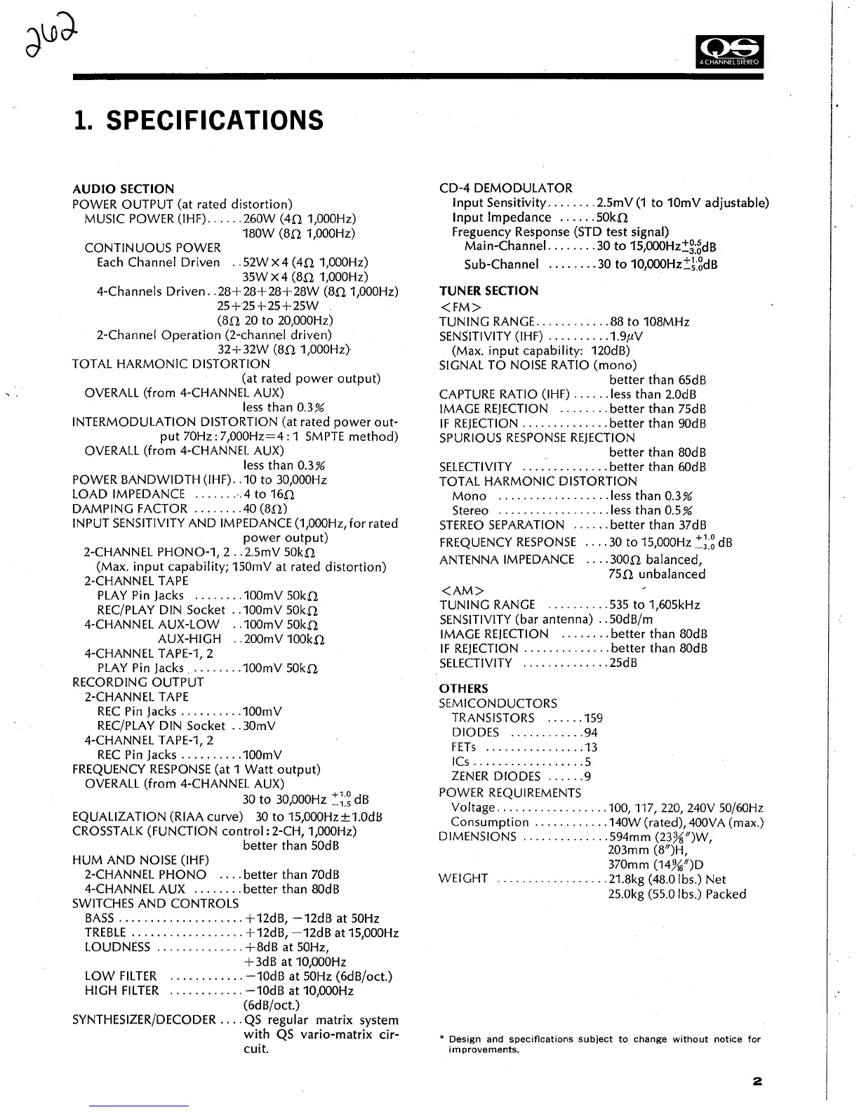 Sansui QRX-7500 - Specifications