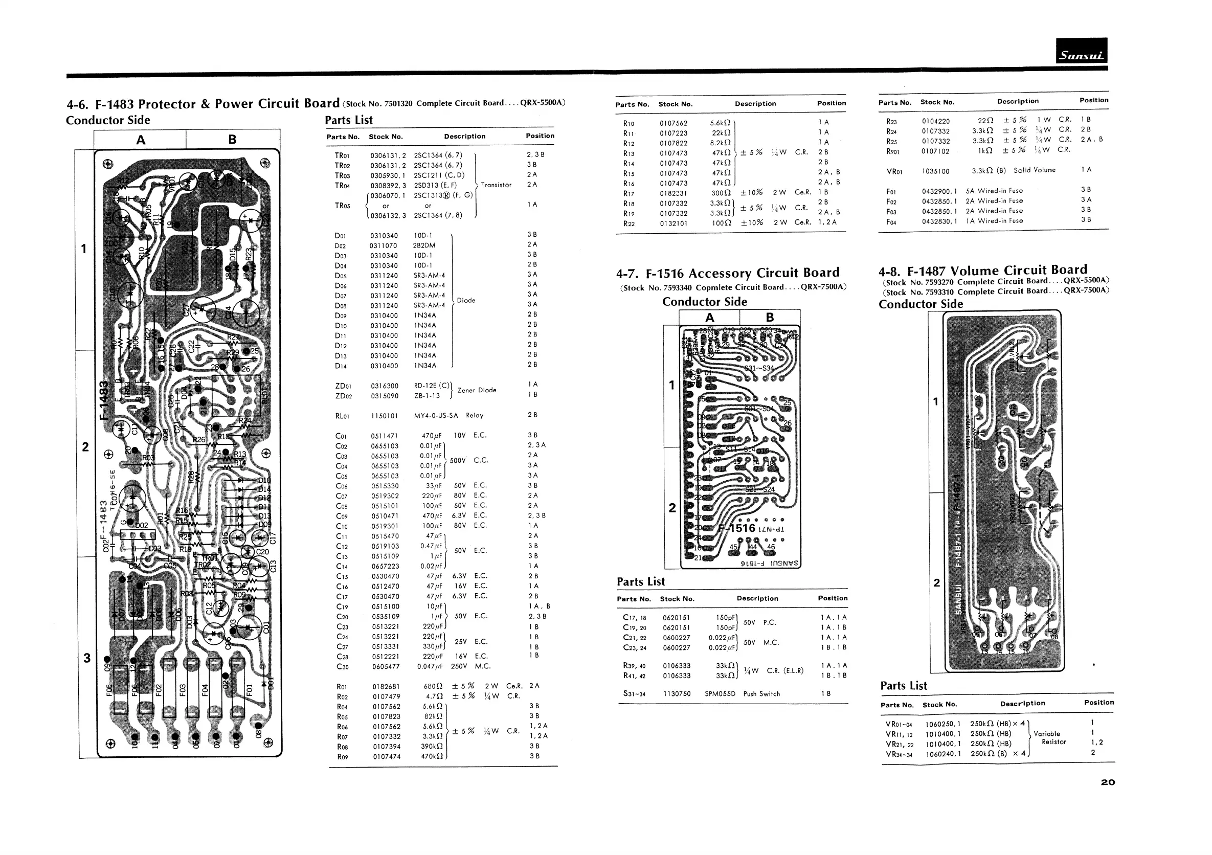 Sansui QRX-7500A - F-1483 Protector & Power Circuit Boar; F-1516 Accessory Circuit Board; F-1487 Volume Circuit Board