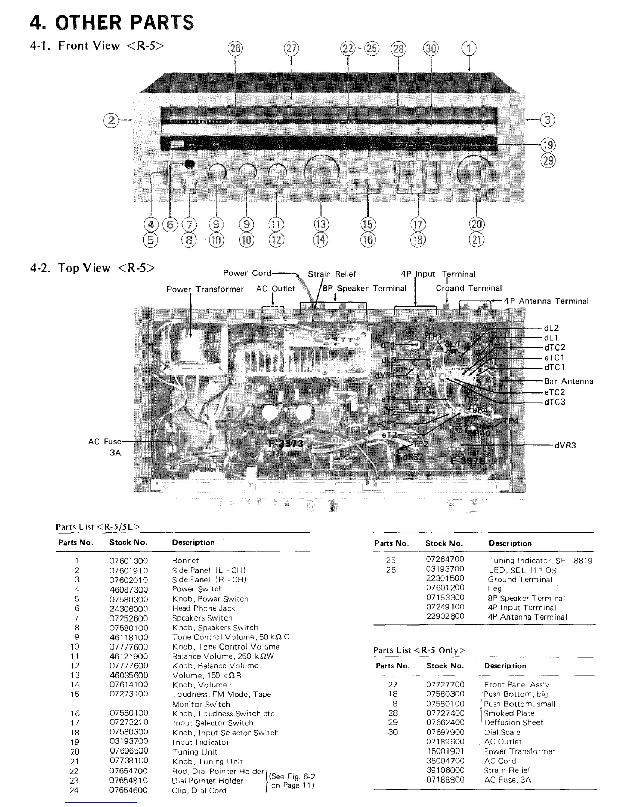 Sansui R-5 - Front View Controls and Indicators (R-5); Top View Internal Components (R-5)