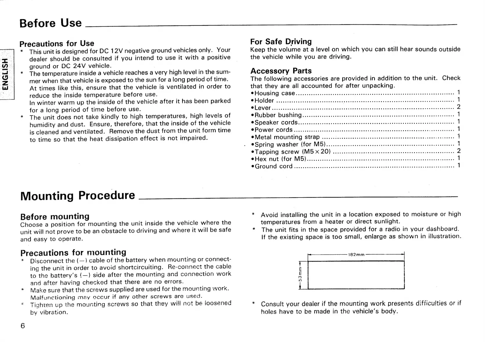 Sansui RX-710 - Before Use; Precautions for Use; For Safe Driving; Accessory Parts