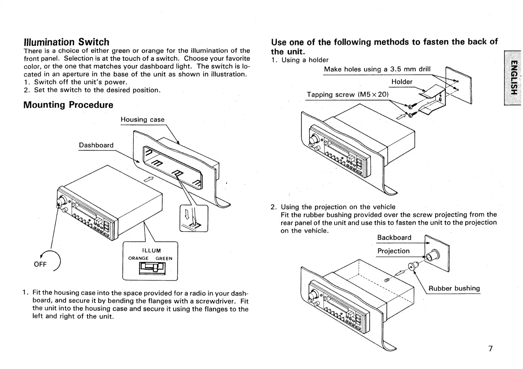 Sansui RX-710 - Using a Holder; Using the Projection on the Vehicle; Illumination Switch; Illumination Switch Operation