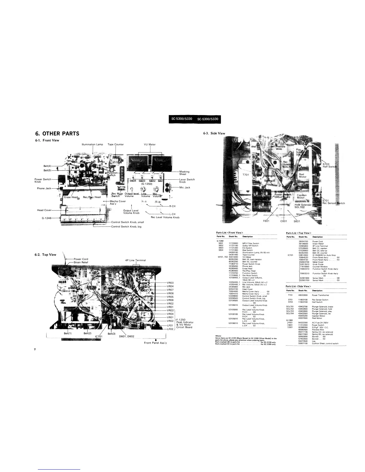 Sansui SC-5300 - Other Parts; Front, Top, and Side Views
