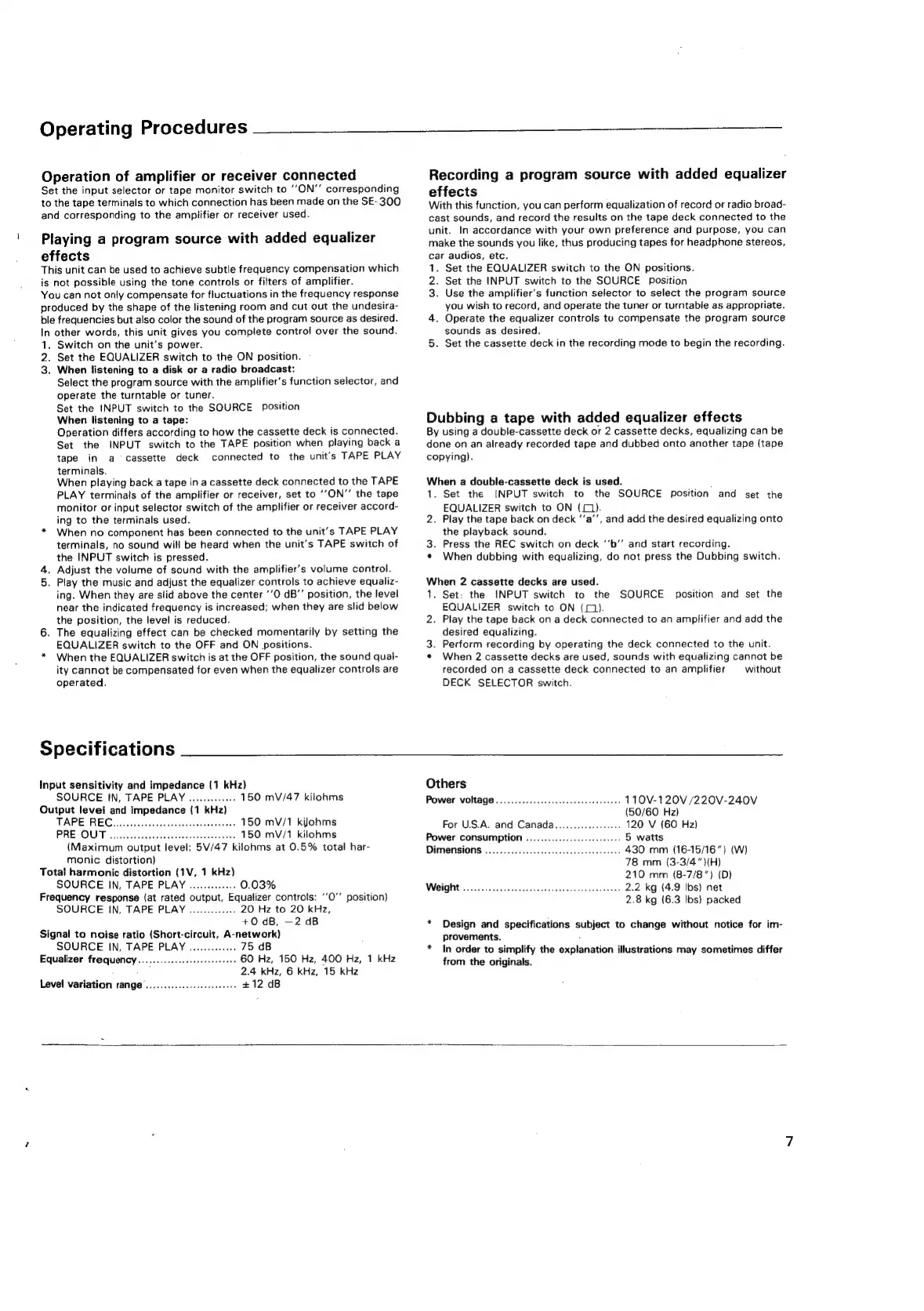 Sansui SE-300 - Specifications