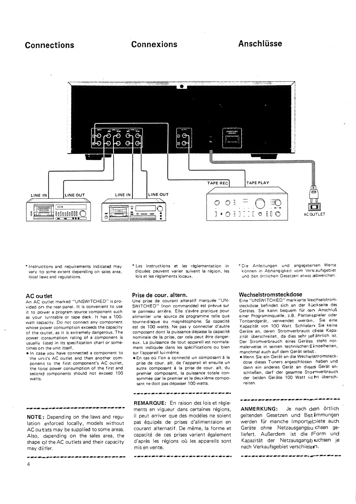 Sansui SE-9 - Connections; AC Outlet Usage