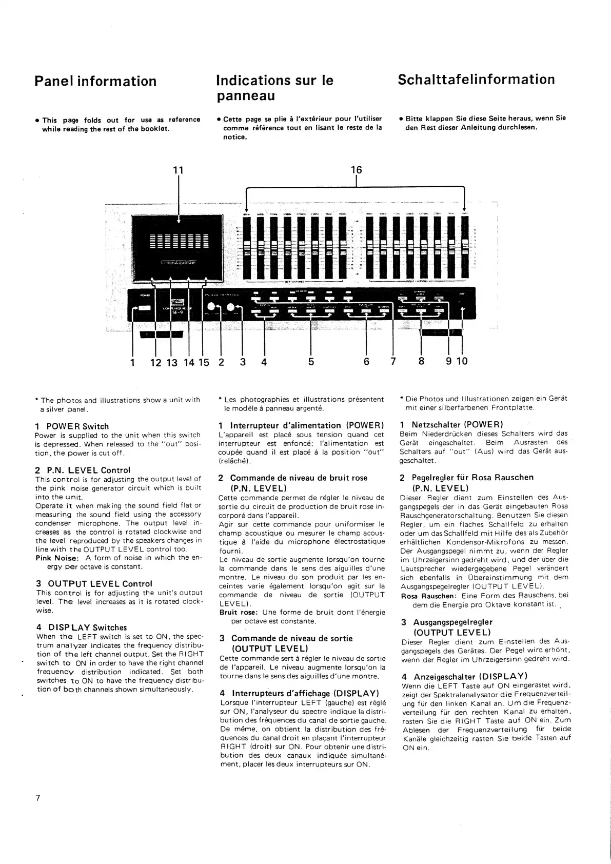 Sansui SE-9 - Panel Overview; Power Switch; P.N. Level Control; Output Level Control