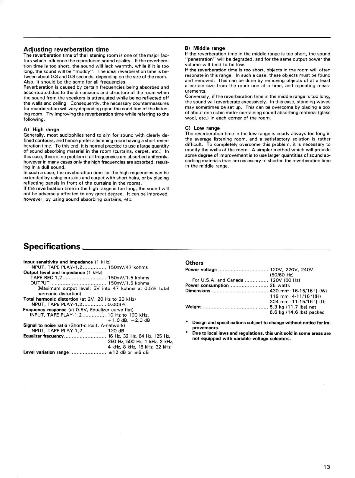 fined contours, and hence prefer a listening room having a short rever-