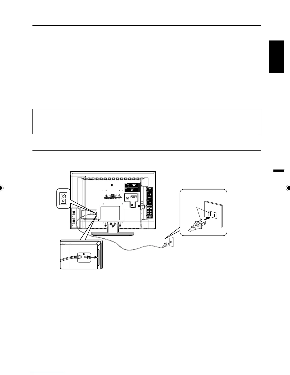 Please make sure to insert the cord securely at both the LCD TV and the wall outlet.