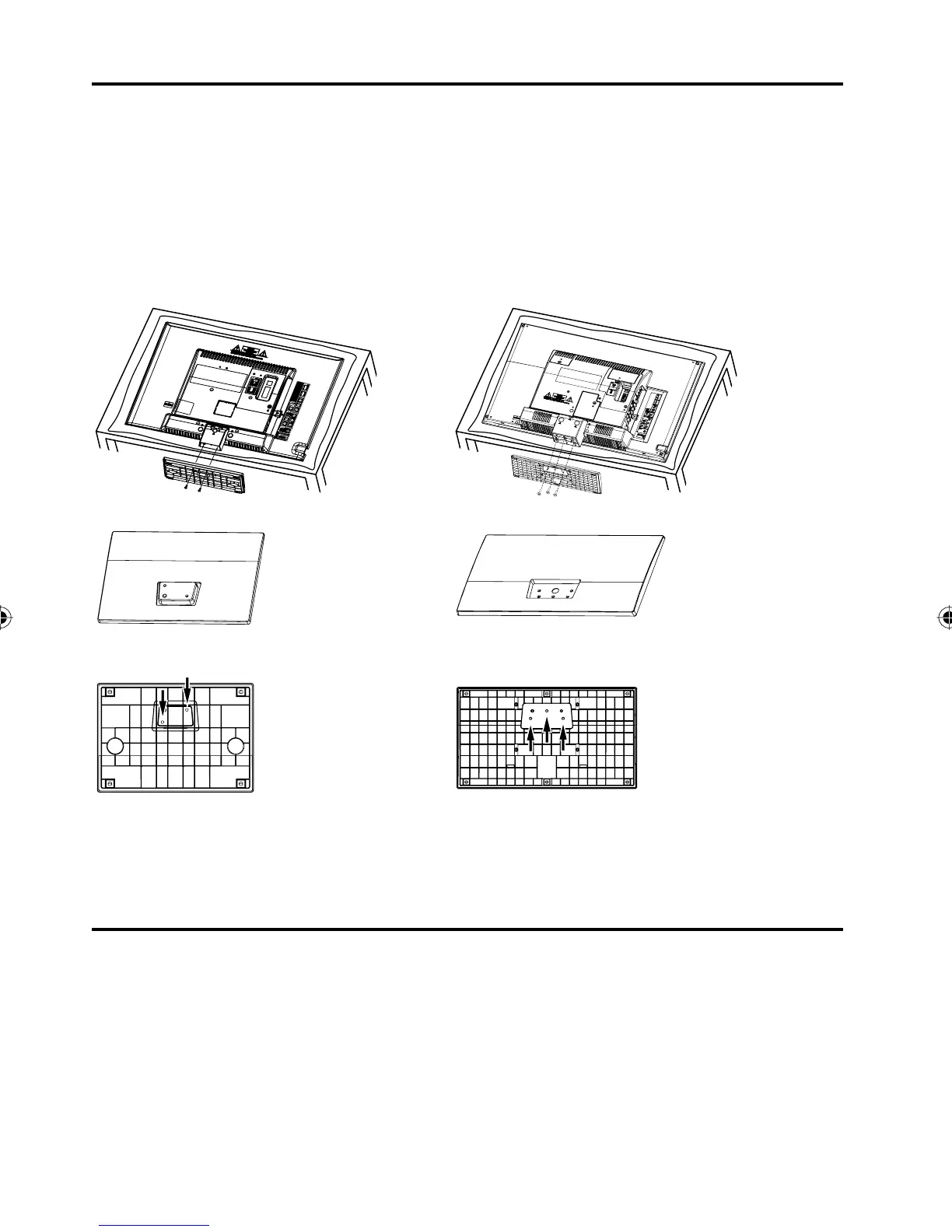 • Before beginning this process, assure that the TV is laid on a clean, safe, and cushioned surface to avoid