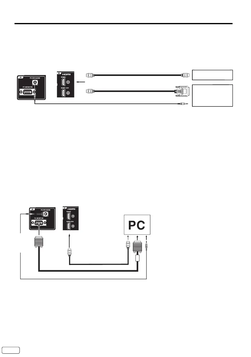 the AUDIO IN connector of the PC/DVI AUDIO IN jack of the TV. You can also connect the PC with HDMI cable.