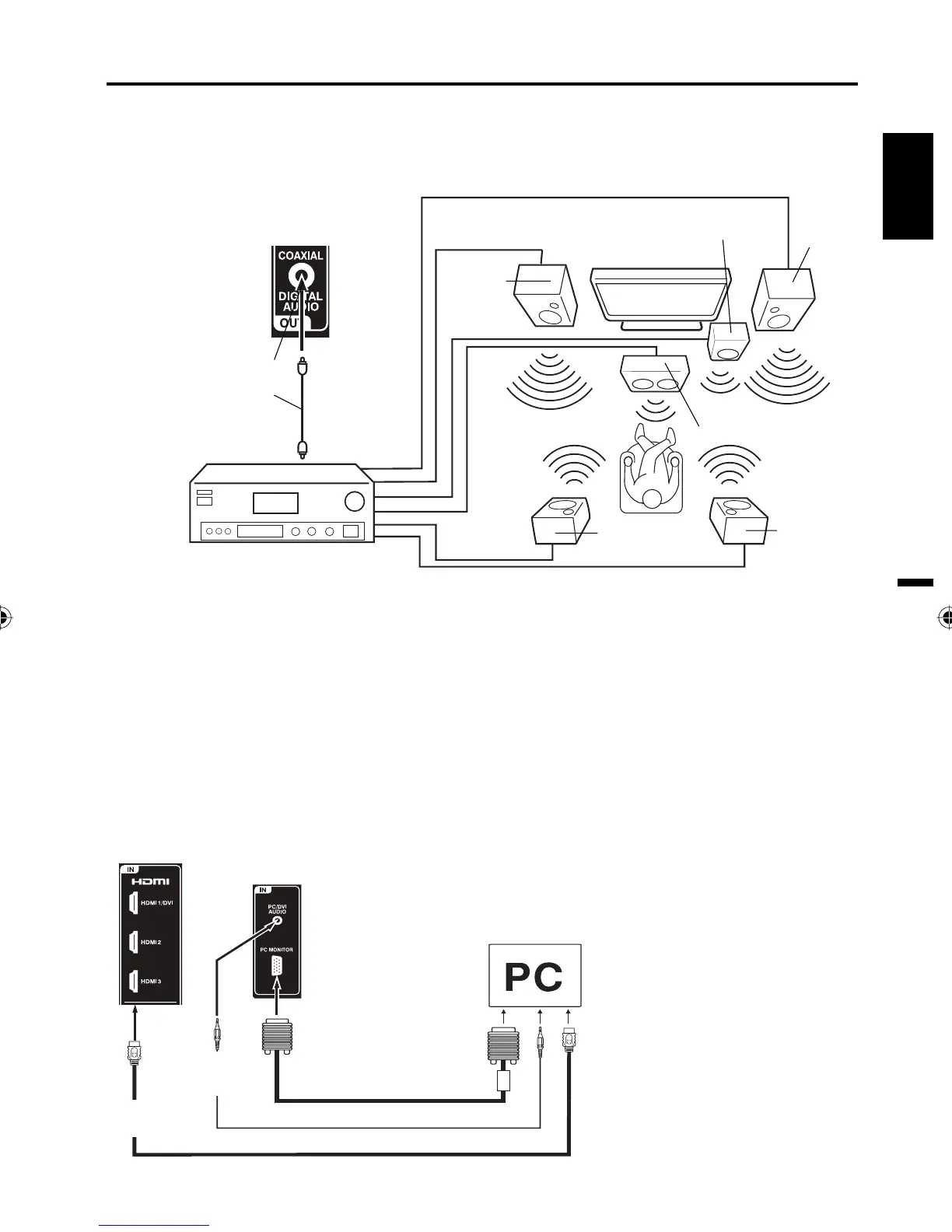 Connect an AV amplifier with built-in Dolby Digital decoder, etc. as shown below.