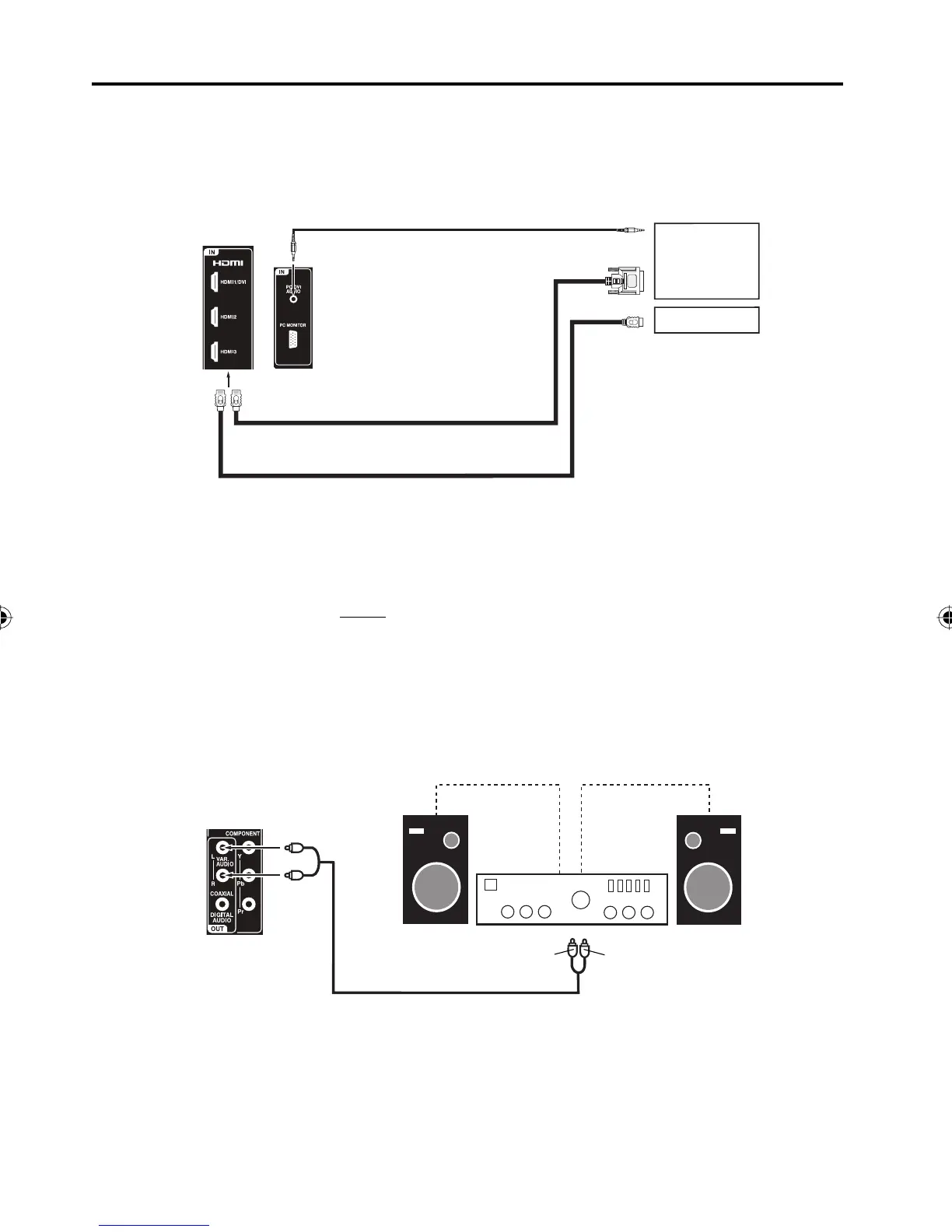 To control the audio, turn on the TV and the stereo amplifier, and turn off the TV’s built-in speakers (see page 17).