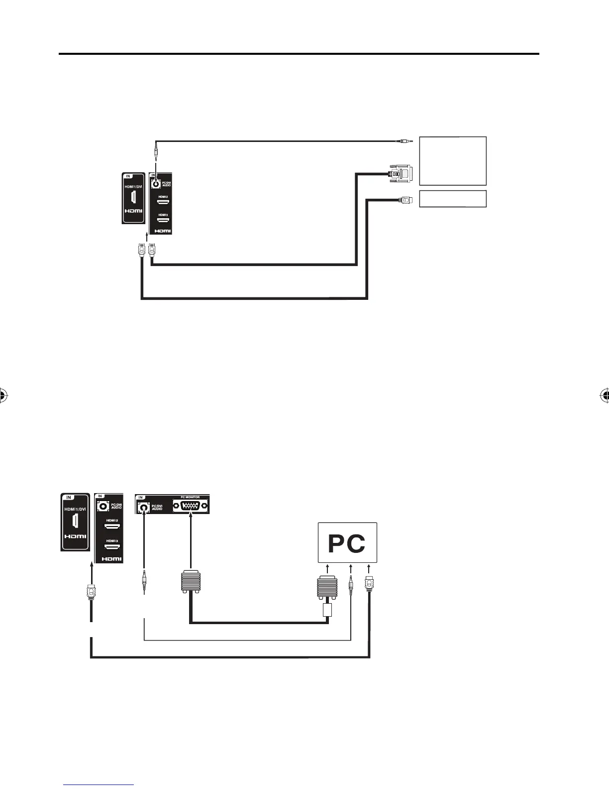 AUDIO connector of the PC/DVI AUDIO IN jack of the TV. You can also connect the PC with HDMI cable. If you