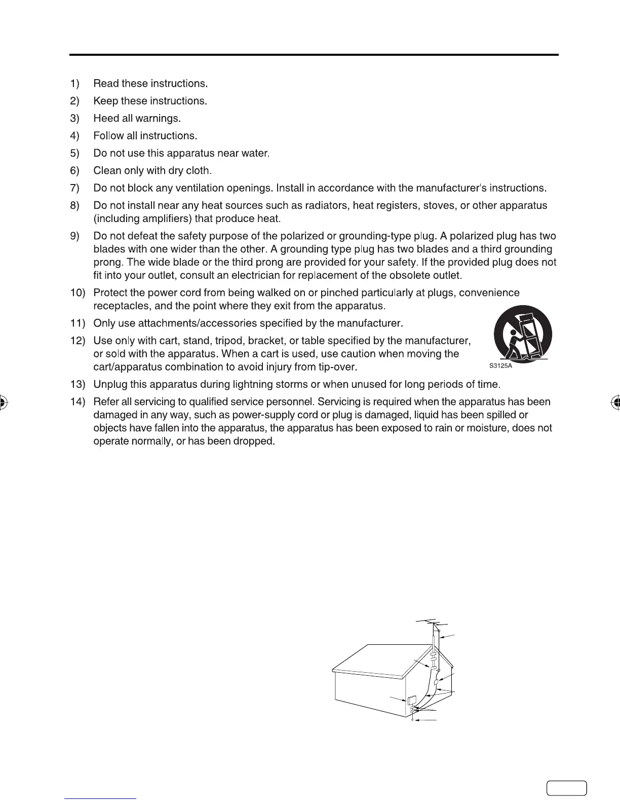 15) Apparatus should not be exposed to dripping or splashing, and objects filled with liquids, such as
