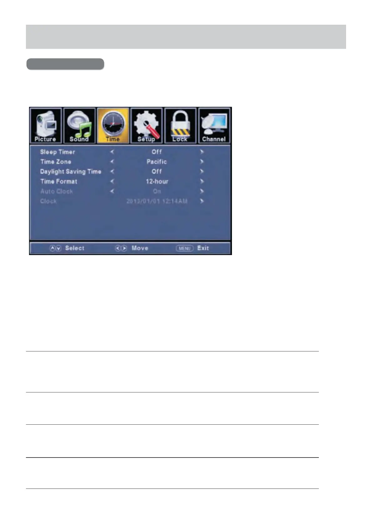 Appuyez sur MENU pour entrer dans le Menu principal, Appuyez sur le bouton W /X pour choisir l’Heure.