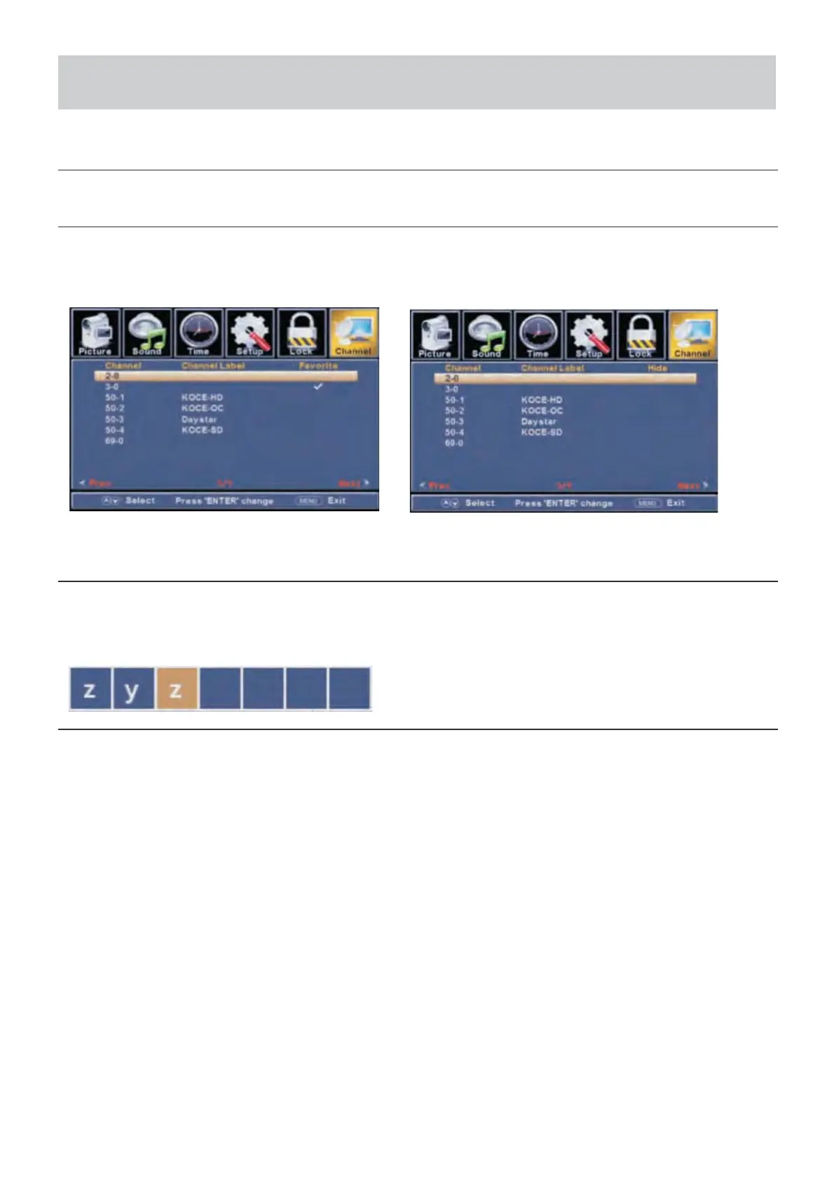Créez des étiquettes pour les chaînes, jusqu’à 7 caractères. Pour effectuer le réglage, appuyez sur la