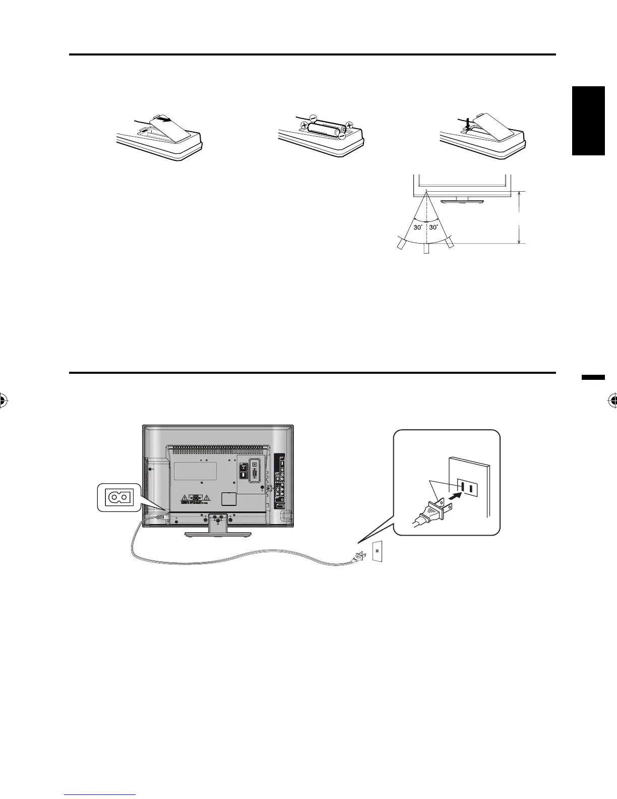 Operate the remote control within a 30° angle on either side of