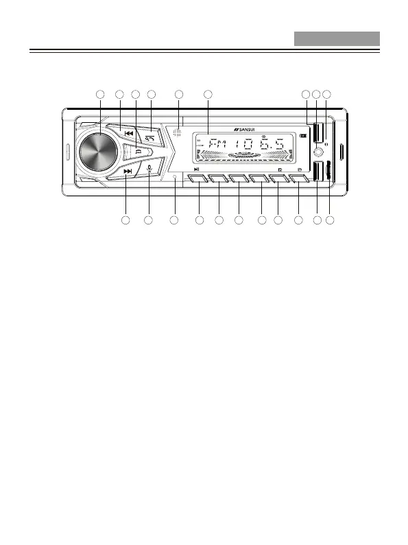 3. Band Selector, Search Radio Station(Long press), Answer Call