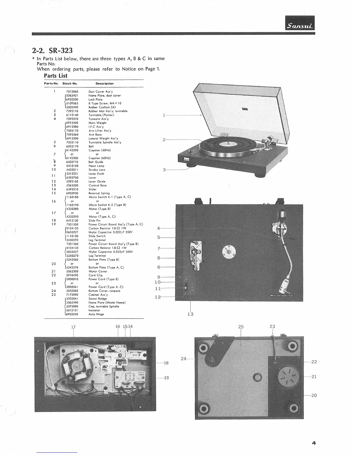 Sansui SR-222 - SR-323 Parts Locations and List