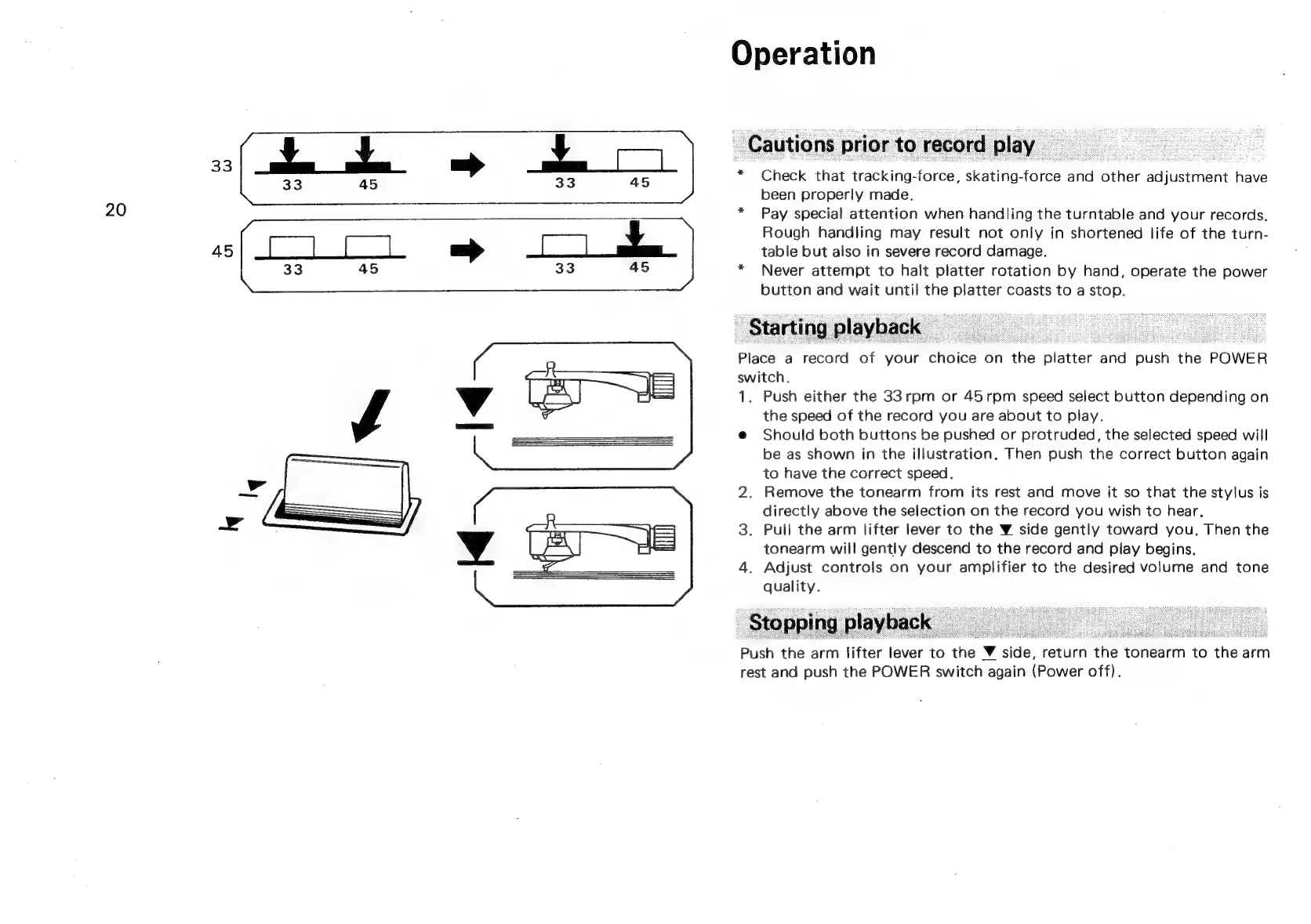 Sansui SR-636 - Operating the Turntable; Cautions Before Playing Records; Starting and Stopping Playback