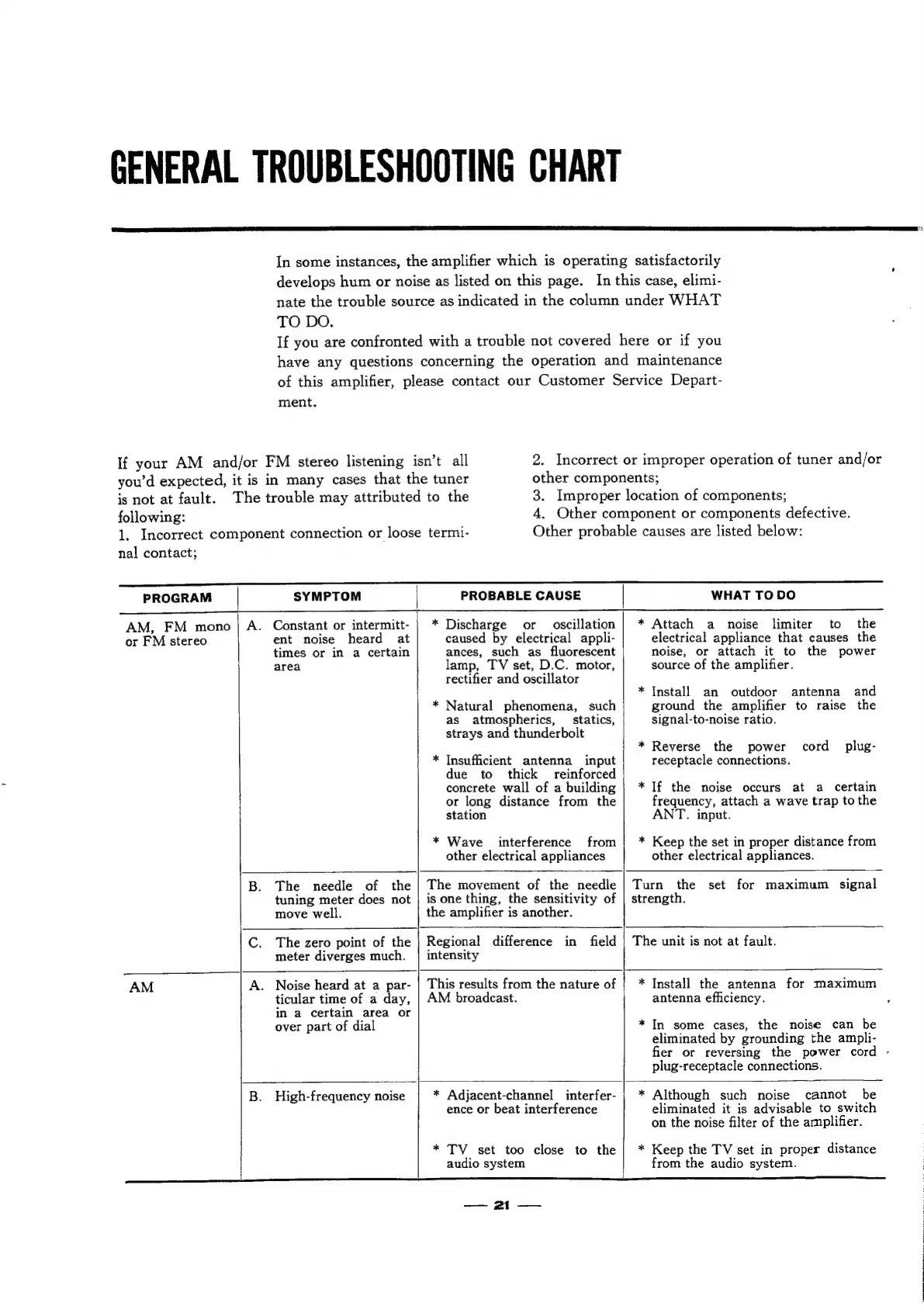 Sansui TU-666 - General Troubleshooting Chart