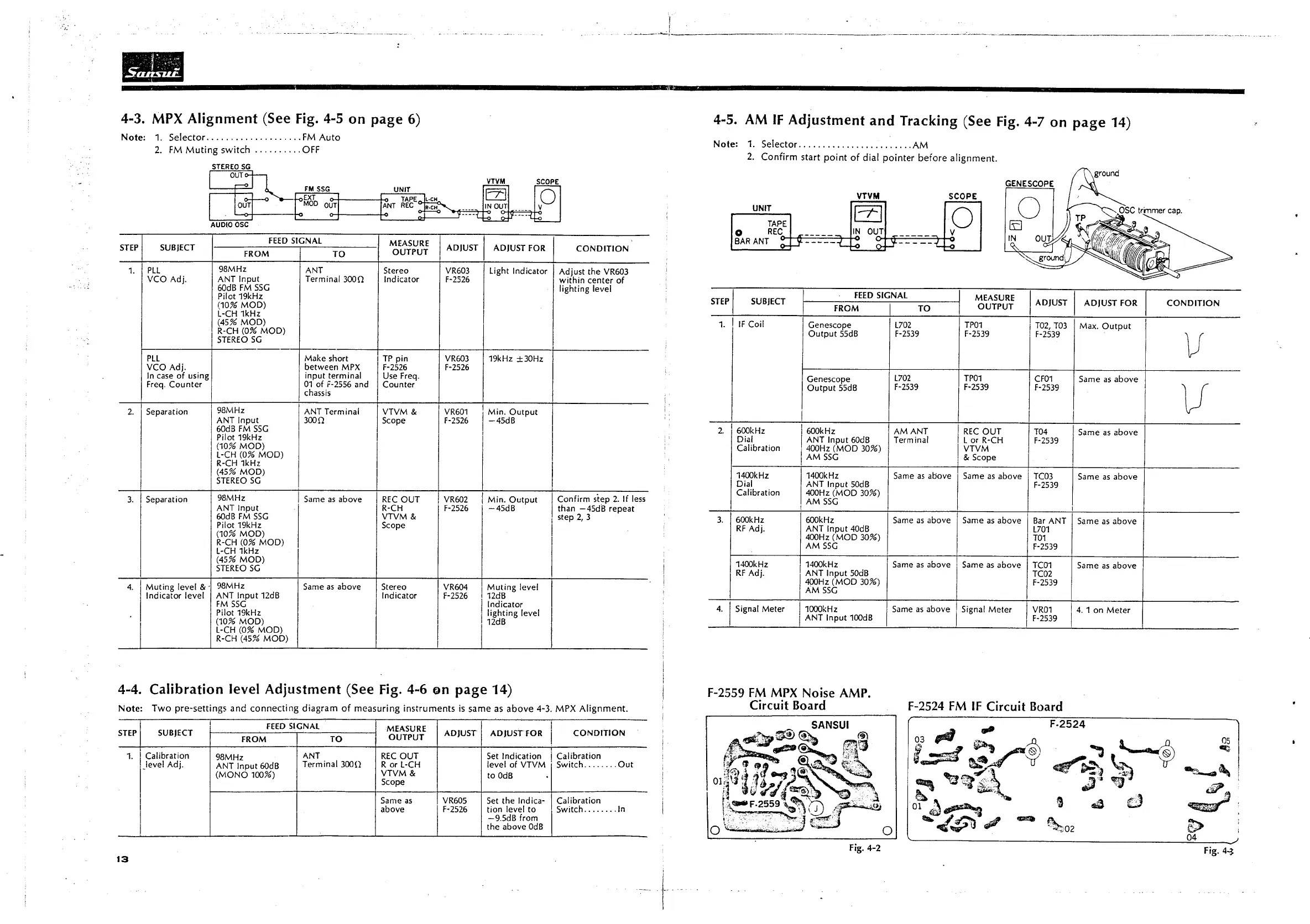 Sansui TU-9900 - MPX Alignment; Calibration Level Adjustment; AM if Adjustment and Tracking