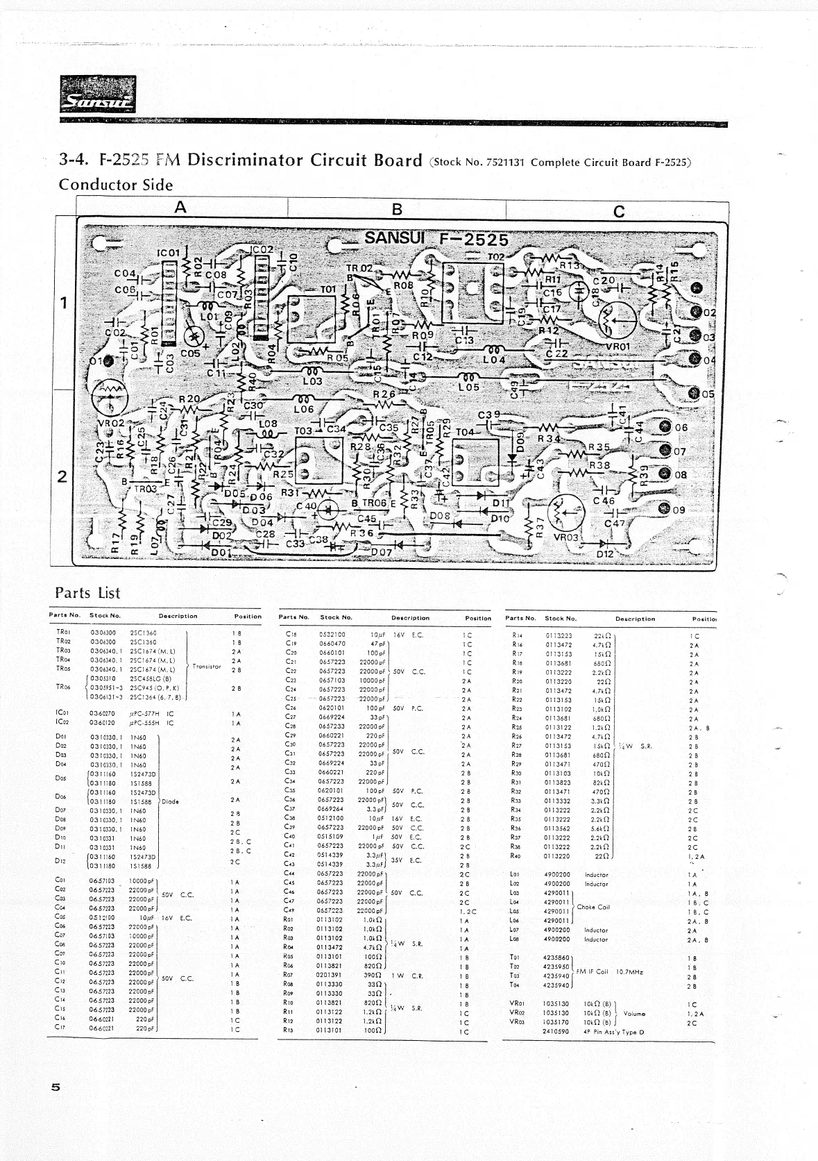 Sansui TU-9900 - F-2525 FM Discriminator Circuit Board Parts; F-2539 AM IF Circuit Board Parts; F-2559 MPX Noise AMP. Circuit Board Parts