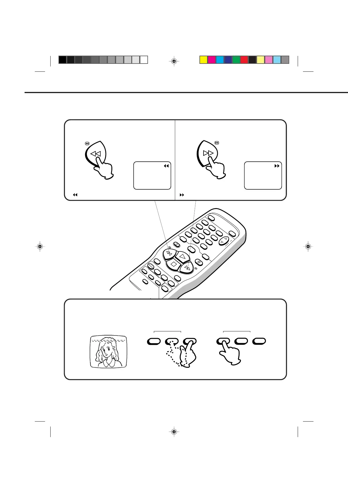Press the REW button in the STOP mode. Press the F.FWD button in the STOP mode.