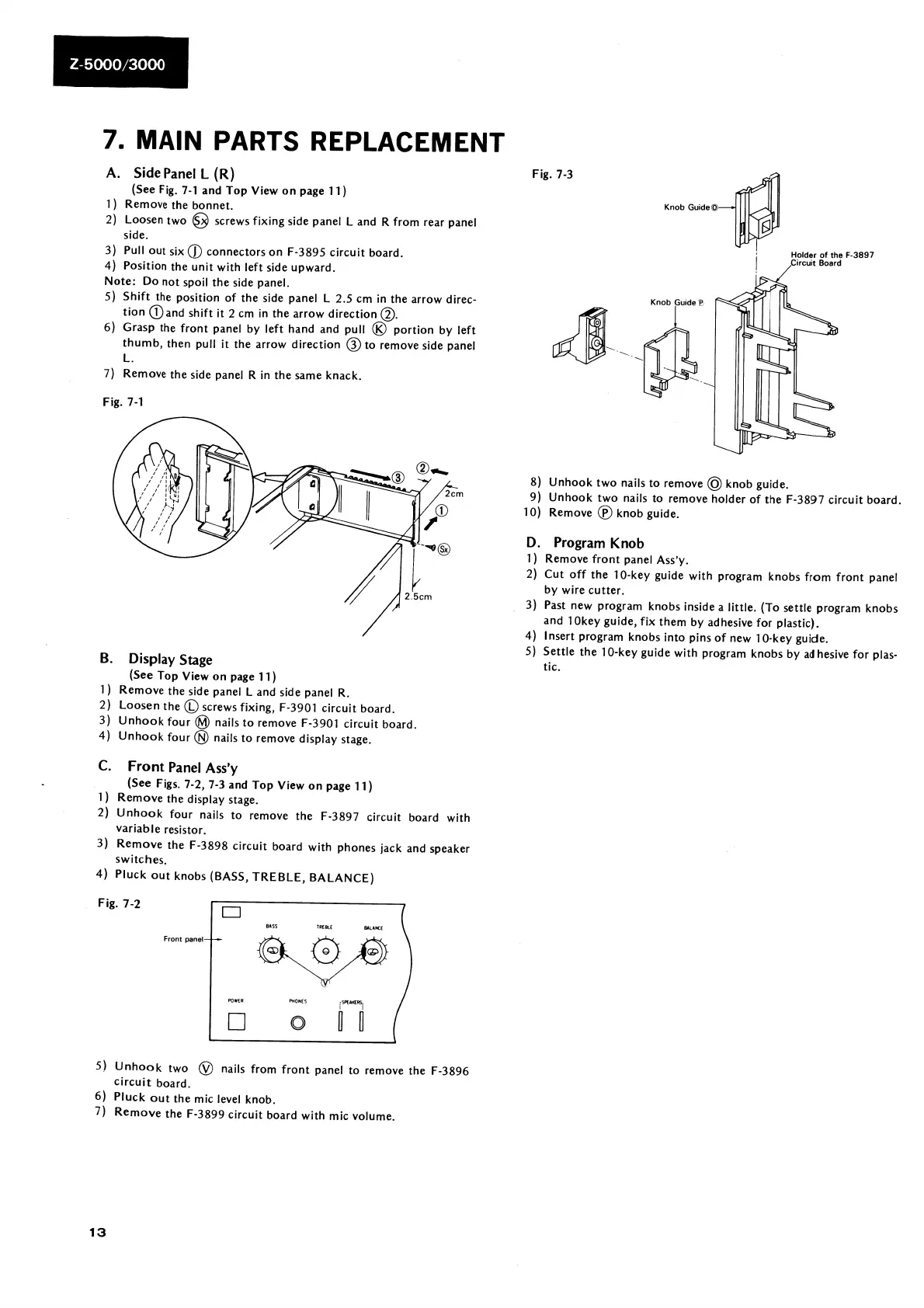 Sansui Z-5000 - Main Parts Replacement Guide; Side Panel Replacement; Display Stage Replacement; Front Panel Assembly Replacement