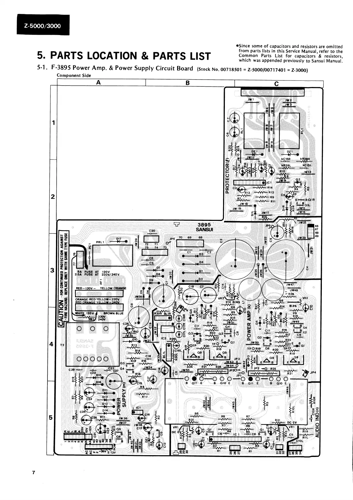 Sansui Z-5000 - Parts Location and Lists; F-3895 Power Amp. & Power Supply Board Parts; F-3903 Signal Indicator Board Parts; F-3725 EQ. Amp. Board Parts