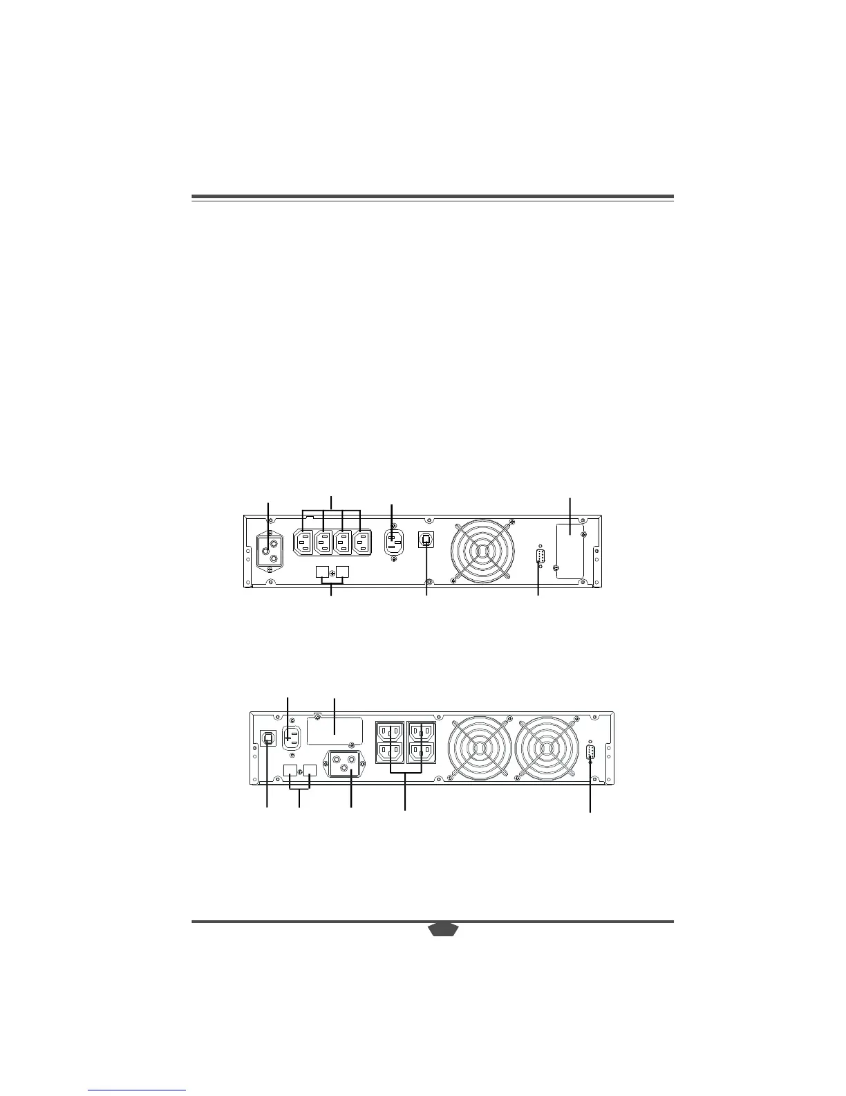 The rear panels of the UPS and the battery packs are shown as below: