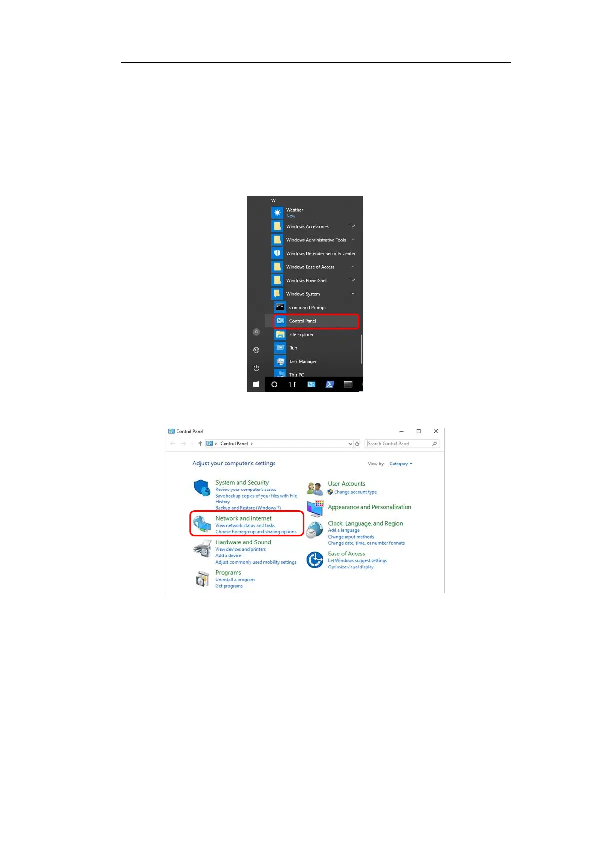 2/Clicks on the “Network and Internet”