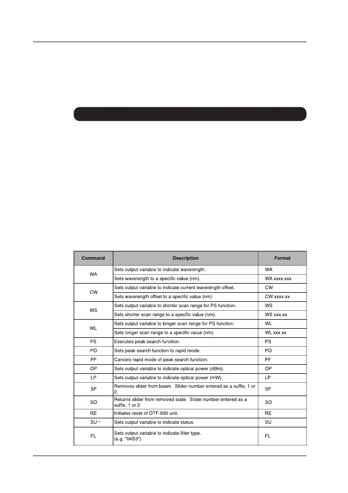 The table below lists the control commands specic to the OTF-930 which can be implemented