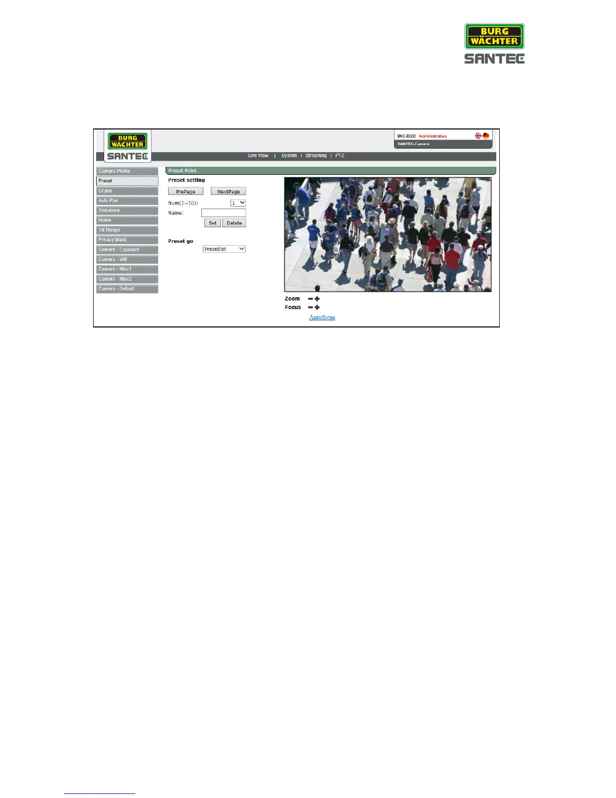 The preset numbers are displayed by 10s. Click on „Pre Page“ or „Next Page“ to display the