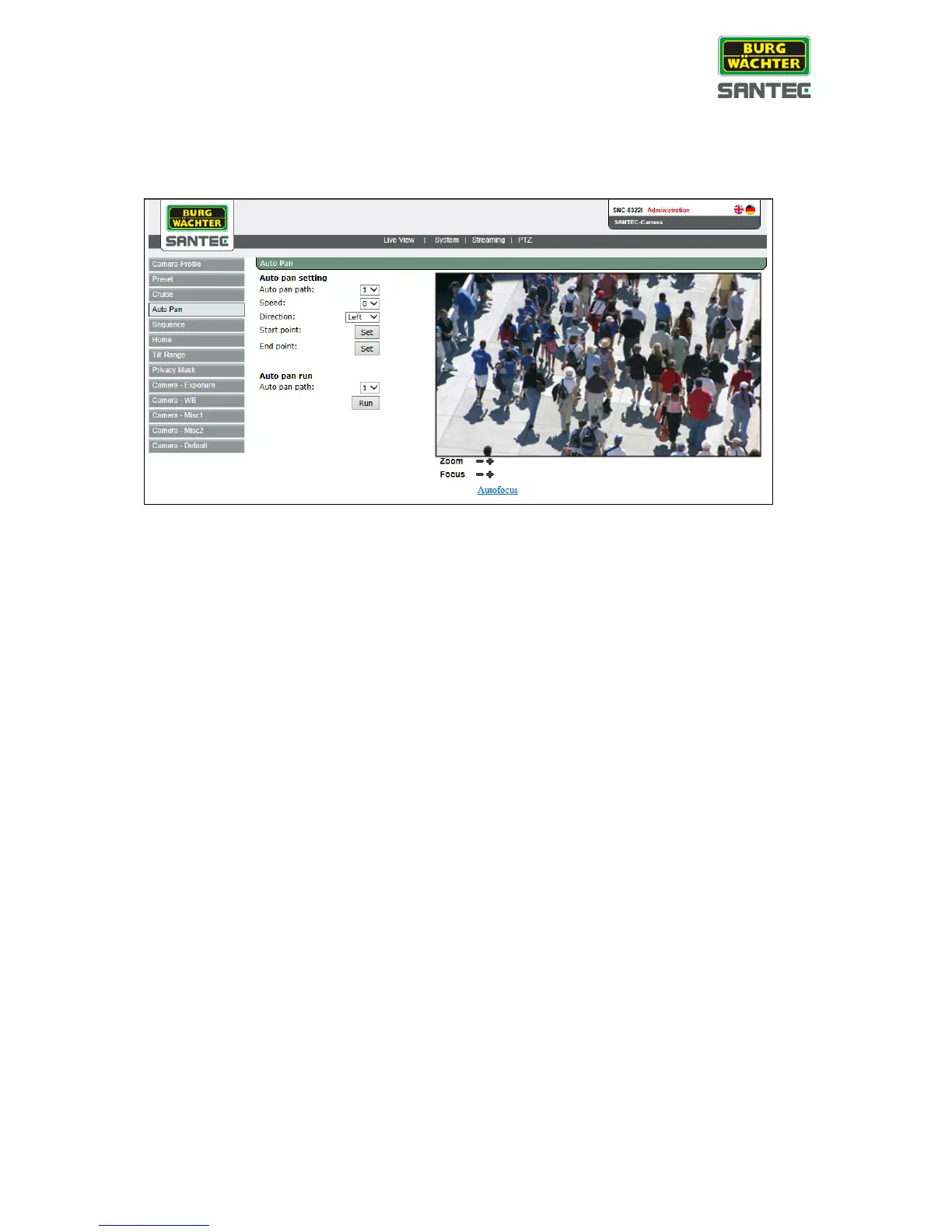 • Select an auto pan path (=auto pan number) from the drop-down list. Overall, 4 auto