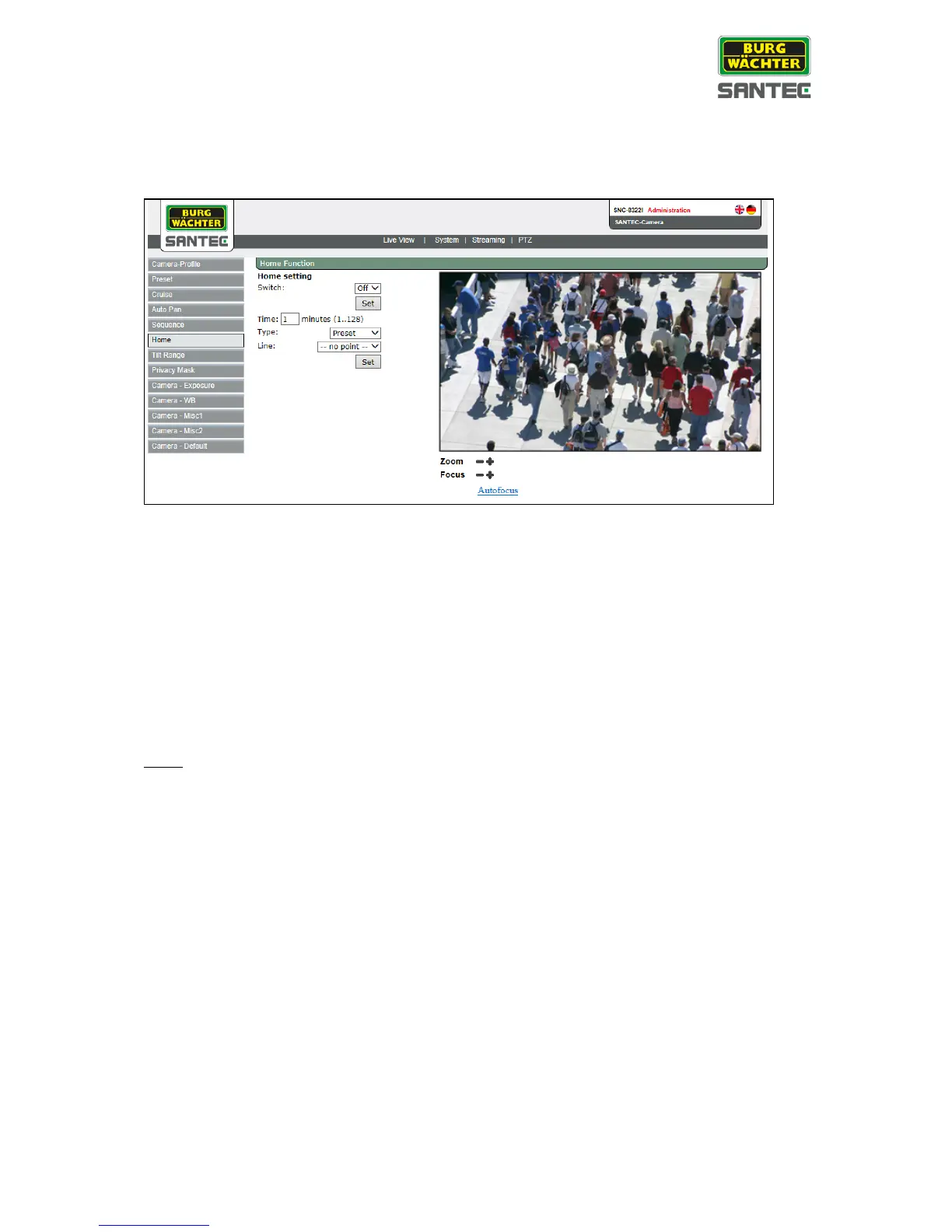 • Enter an elapsed time (1-128 minutes) after which the camera goes into the home