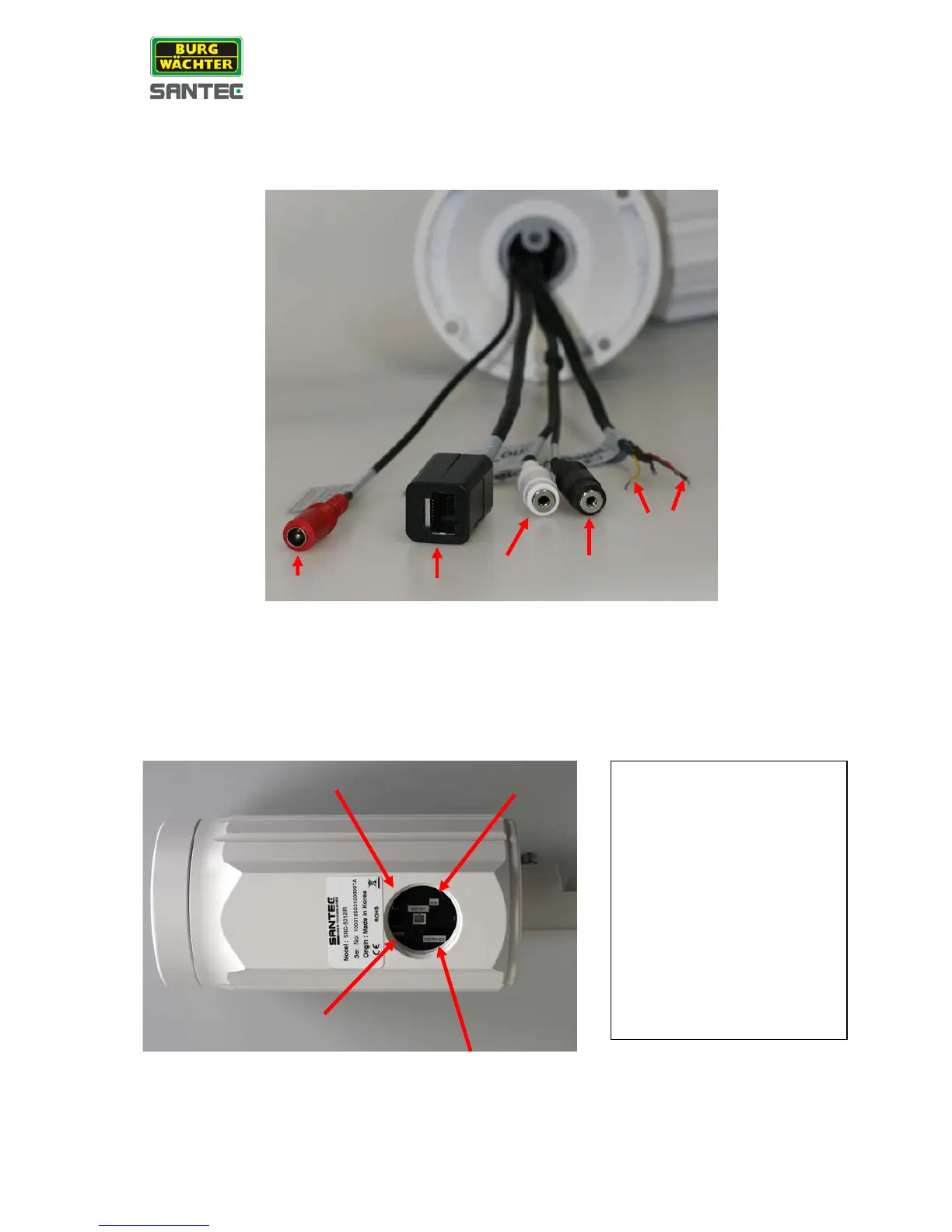 The following connectors/cables already attached to the camera: