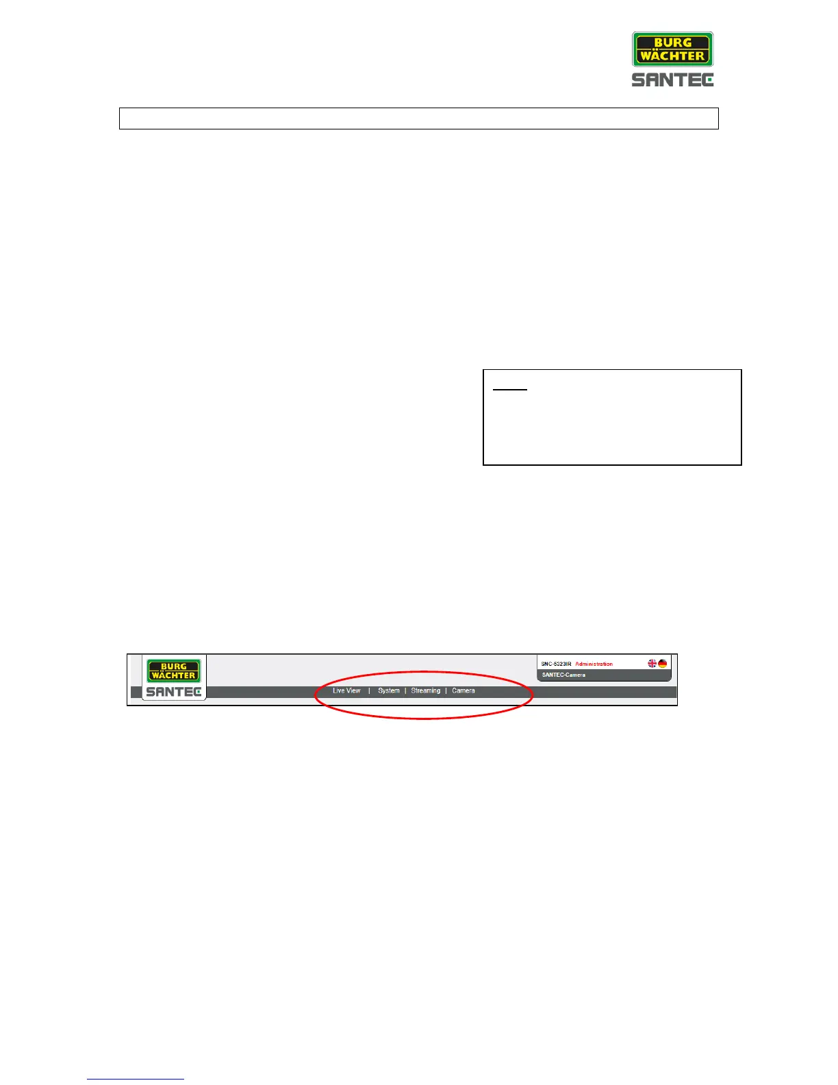 <Live view>, <System>, <Streaming> and <Camera>.