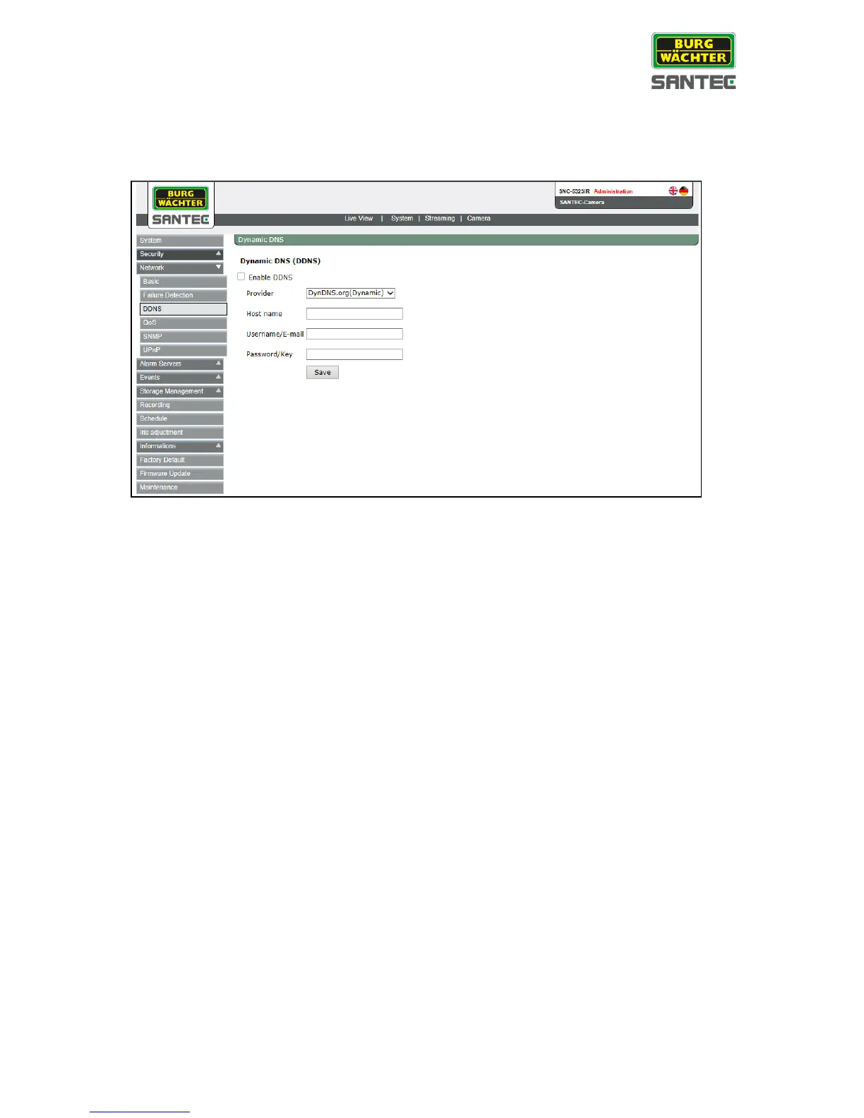 The DDNS setting can be found under this path: System > Network > DDNS