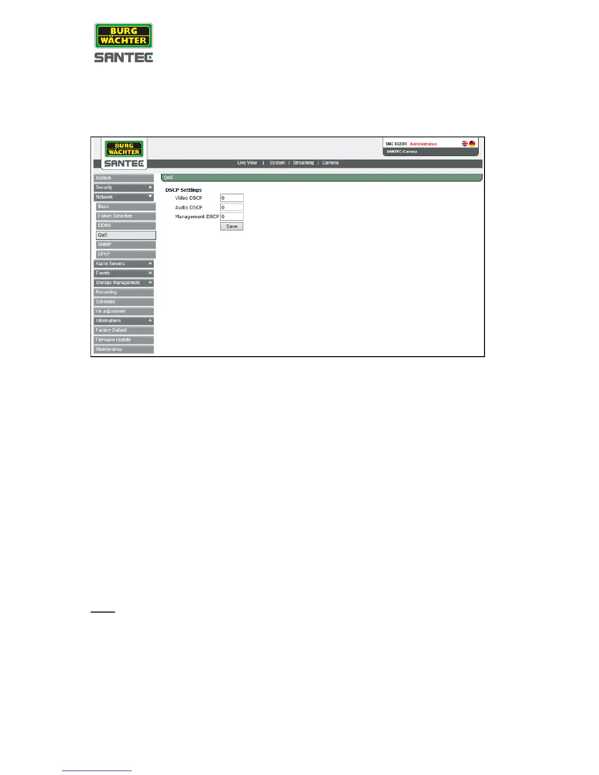 disabled. The IP camera uses the following QoS classes: Video, audio and management.