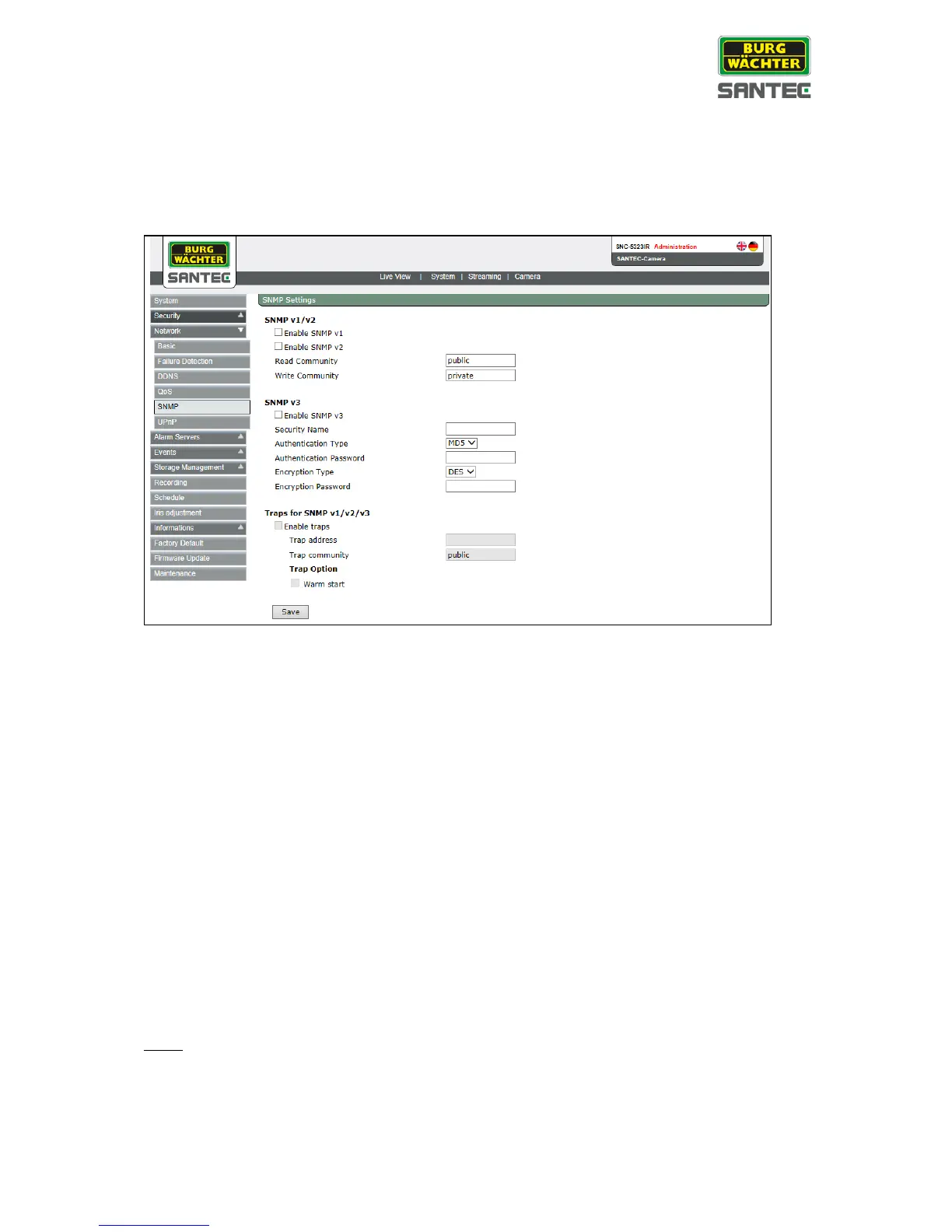 SNMP v3 provides enhanced security by protecting the camera against unauthorized access.