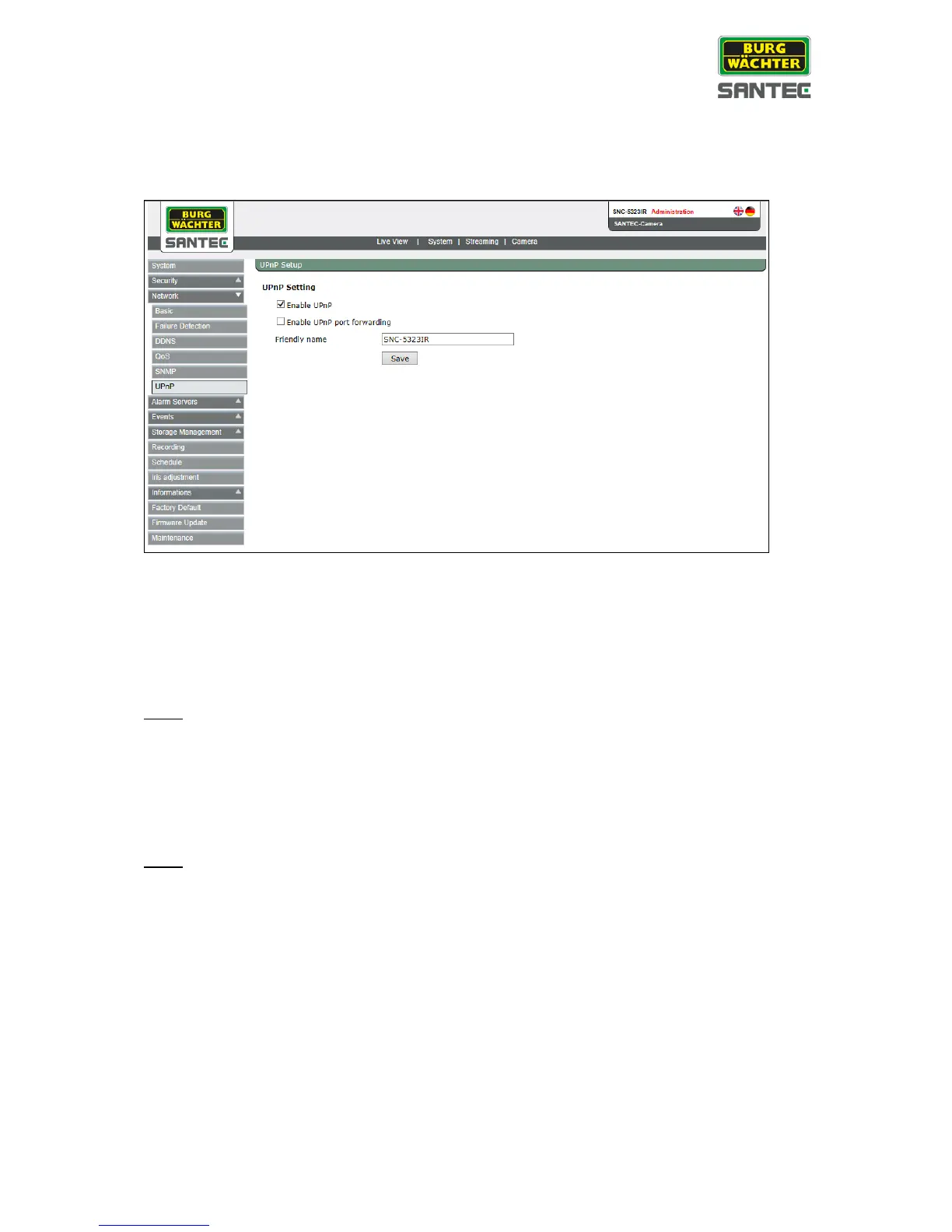 When the UPnP port forwarding is enabled, the IP camera is allowed to