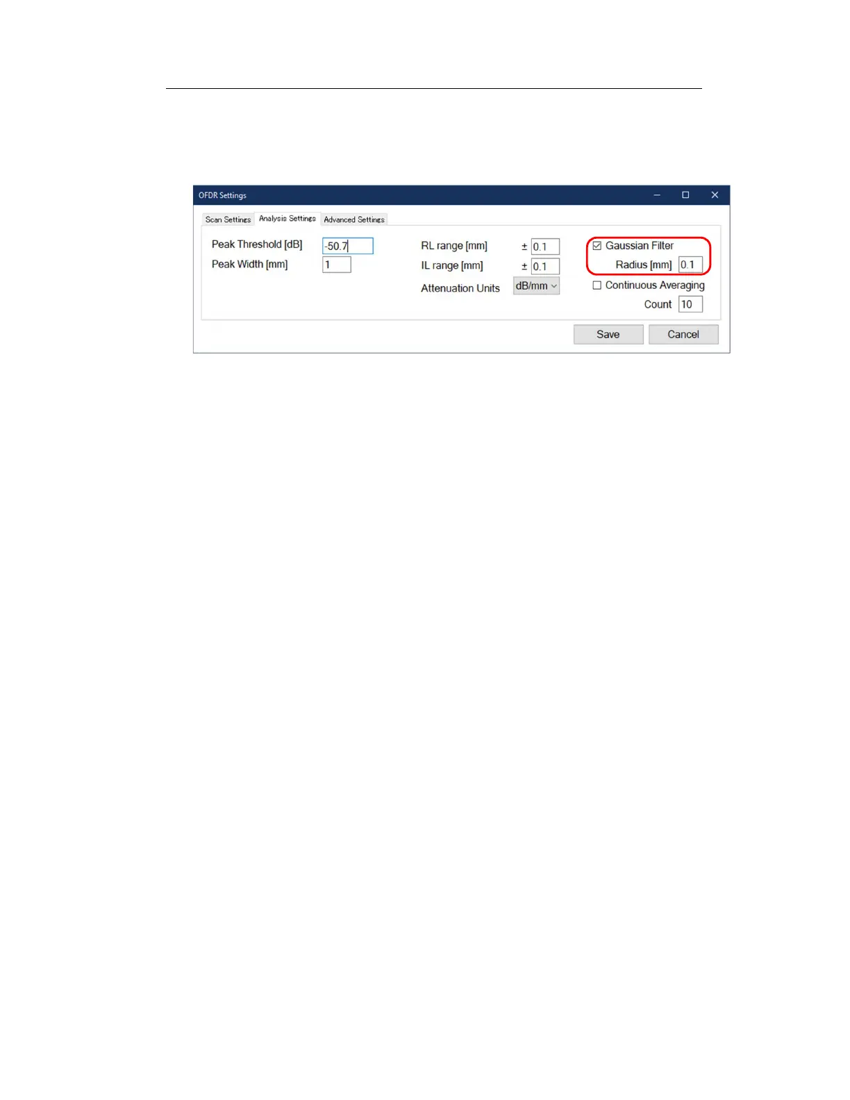 To smooth the reflection characteristics graph, select the "Gaussian Filter" check
