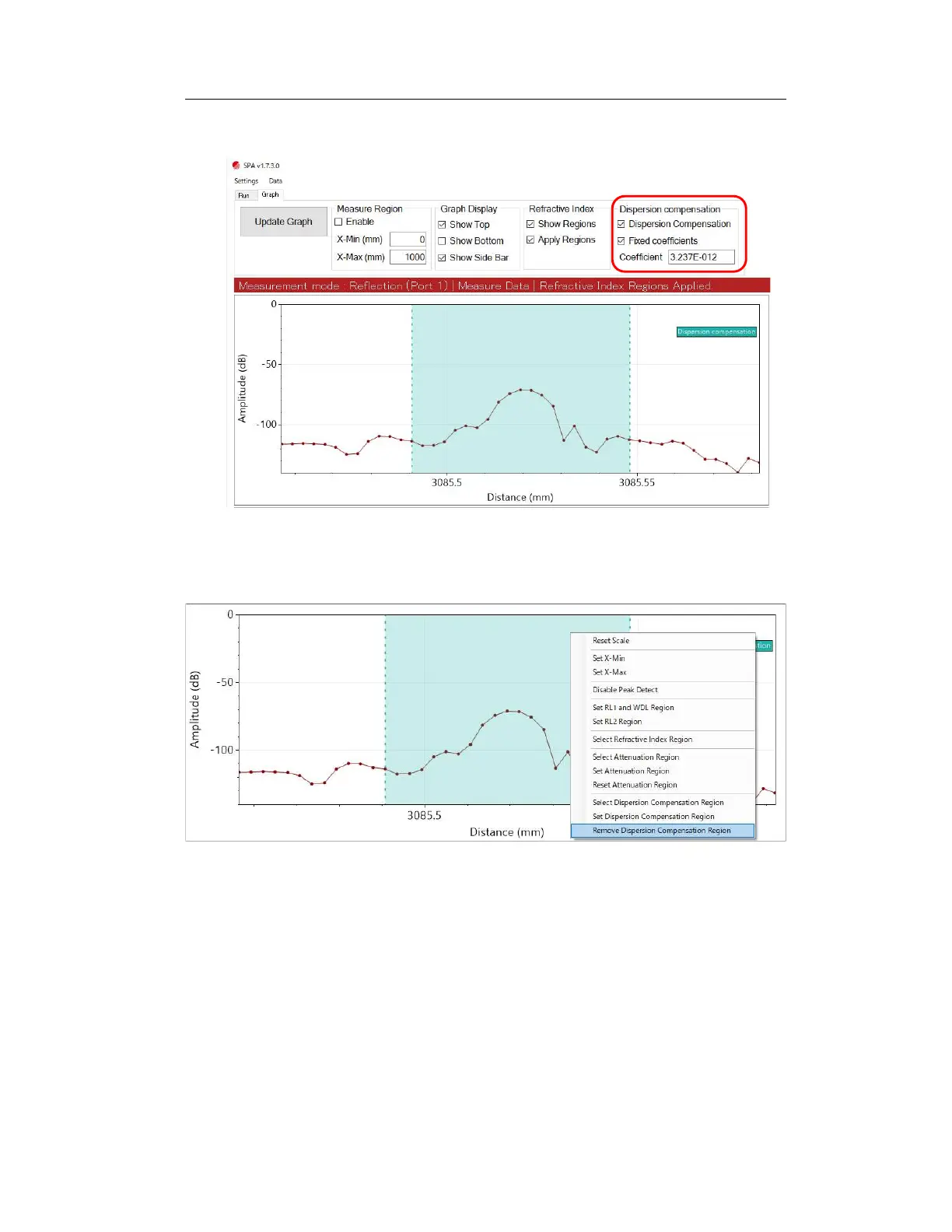 To remove a dispersion compensation region, right-click and select Remove Dispersion