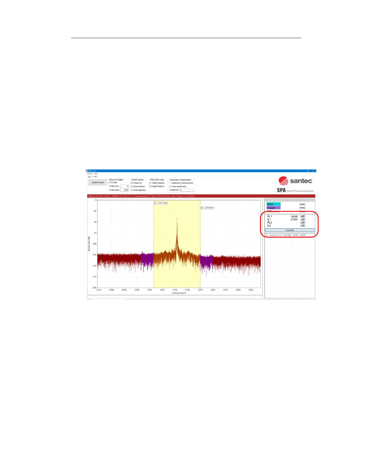 return loss (RL1) and insertion loss (IL2) calculated for the selected area.