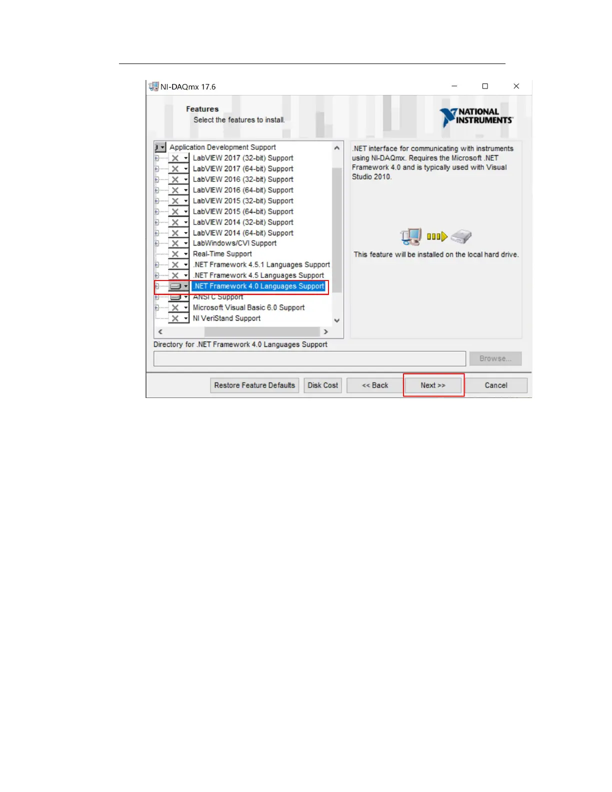 Figure 7-7 NI-DAQmx .NET Framework 4.0 Development Support