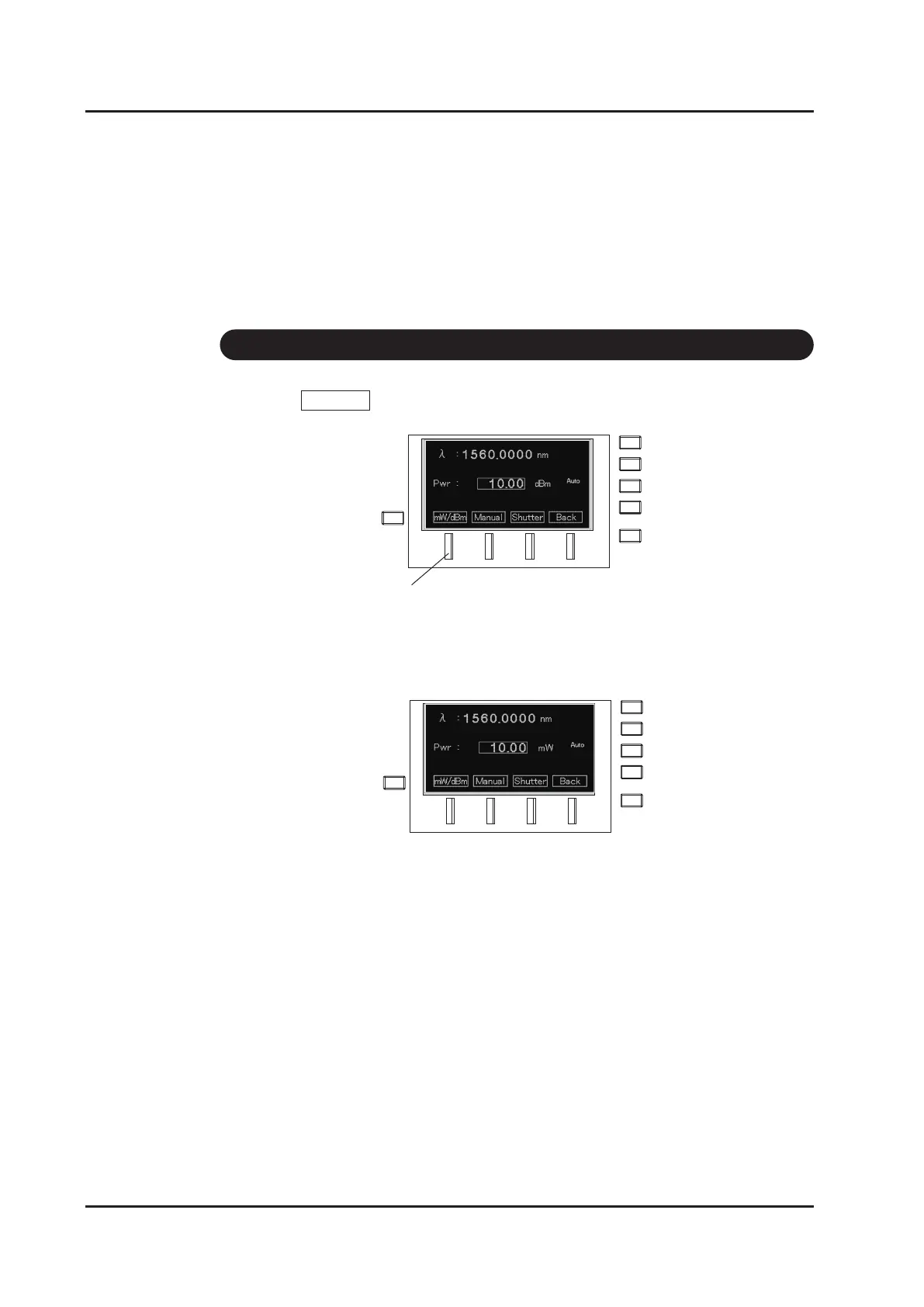 1. Press mW/dBm (F1 key) on the power setting screen.