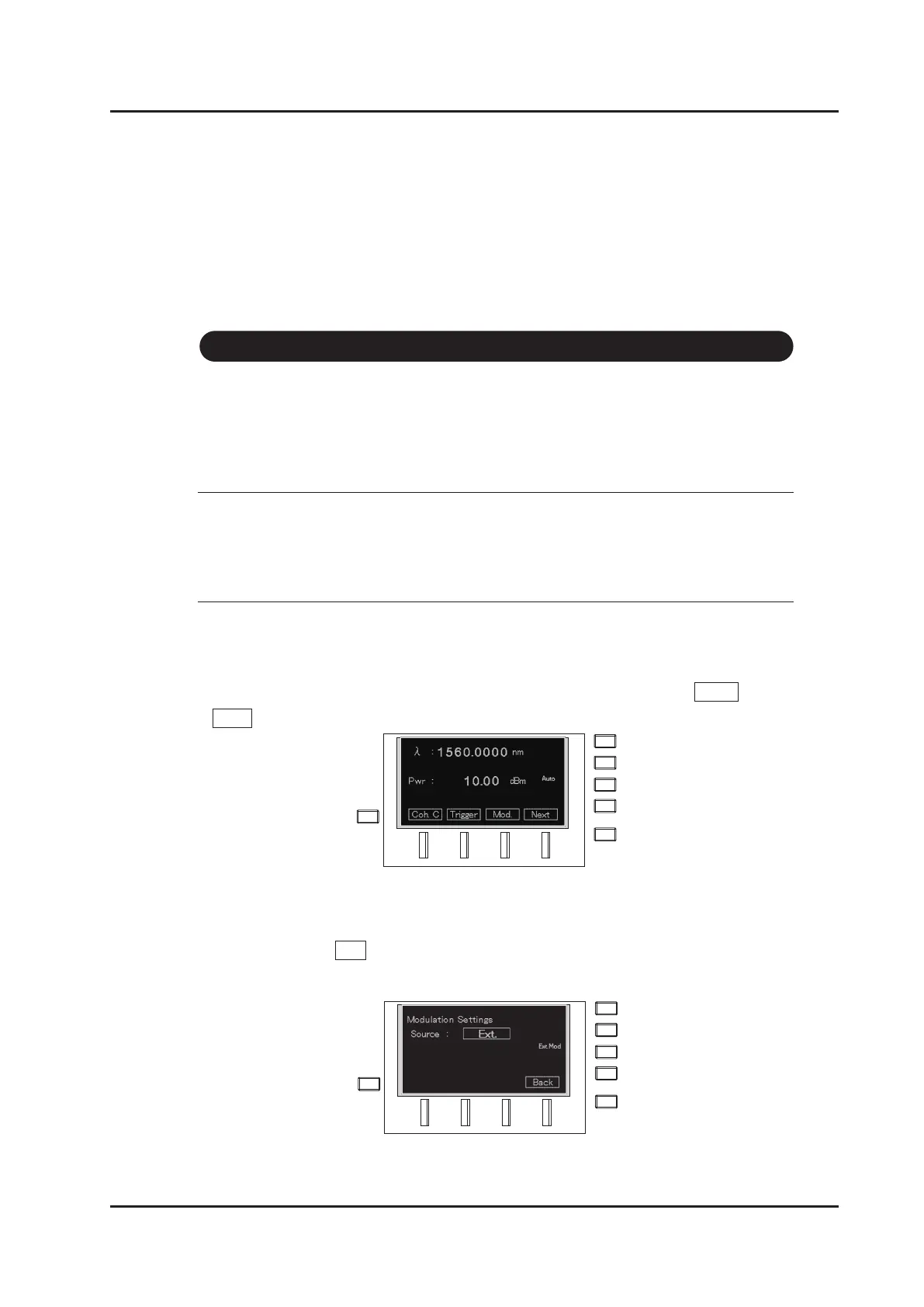 Modulation bandwidth is expanded and “Ext. Mod” lights up at the right side on the screen.