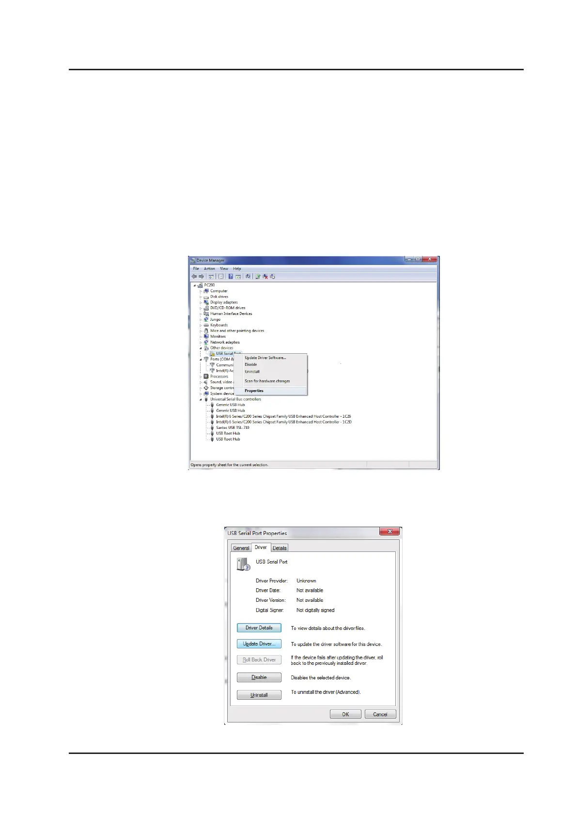 Devices”. Right-click on “USB Serial Port” and click on “Properties”.